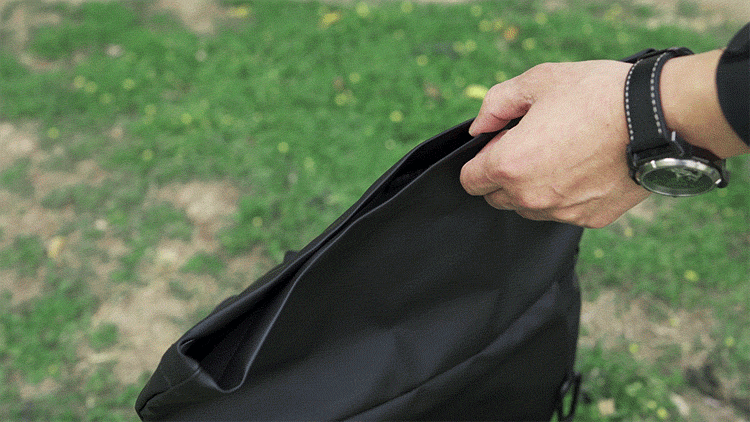 ロール部のDURAFLEX製バックルも、ネオジム磁石内蔵のマグネット吸着。「カチッ」と留めるタイプのバックルではないのでバックル破損の心配もいらず、スムーズにロールアップが可能。