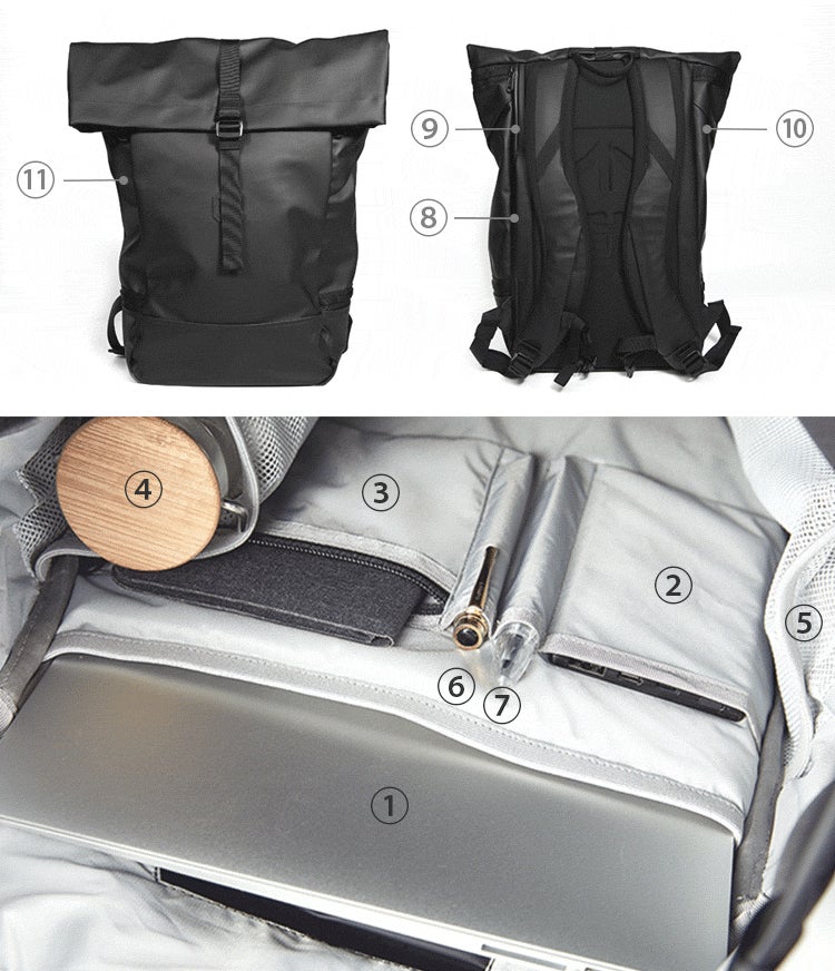 リュック本体は充実の11ポケット搭載。15インチのラップトップ用のものから、メモ帳用やボールペン用といった小物用サイズのポケットも充実。どこに何を仕舞おうか、外出前からワクワク感が止まりません!