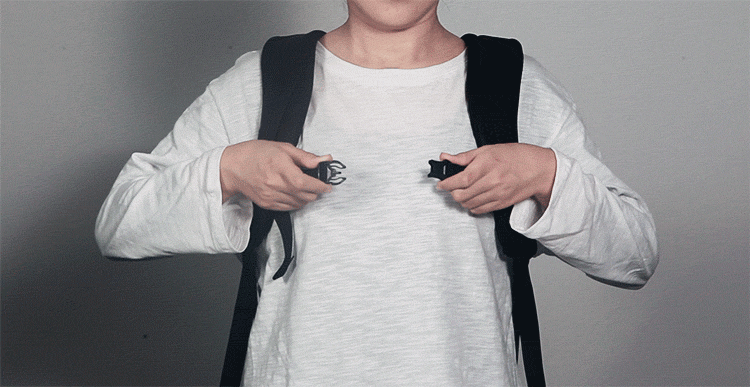 両肩のベルトを繋ぐチェストストラップは、負荷をうまく分散させて肩への負担を減らしてくれます。高さ調節が可能ですので、あなたが一番楽な位置に設定できます。