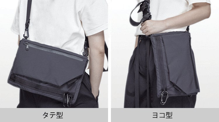 ベルトの取り付け方で、バッグをタテ型にもヨコ型にも、あなたが一番使いやすいスタイルに変えられます。