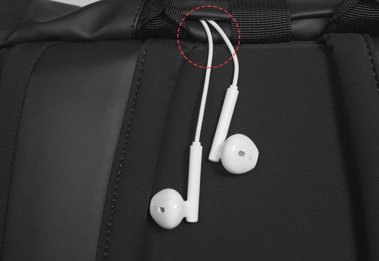 リュック上部にはポケットと繋がるスリットが施されているので、スマホやポータブルスピーカーをリュックに入れて気軽に音楽も楽しめます。