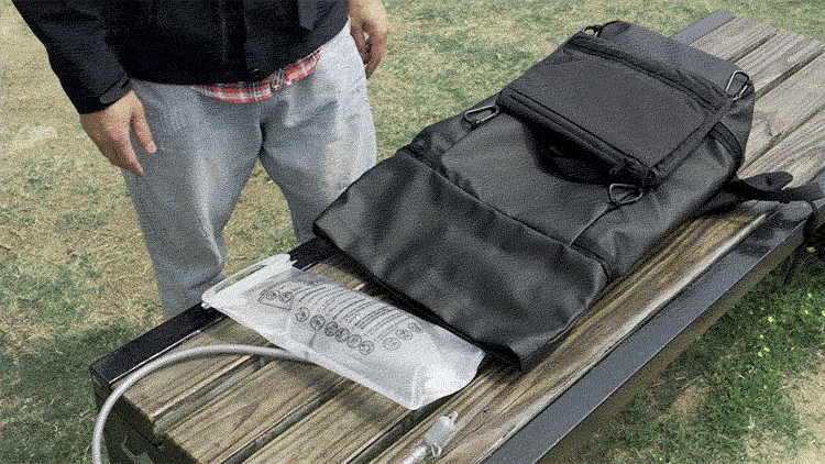 内部ストラップも搭載されているので、ヘッドホンを吊るしても、給水用の水袋をセットして上部スリットから給水用ホースを通せばサイクリング中でも水分補給ができます。