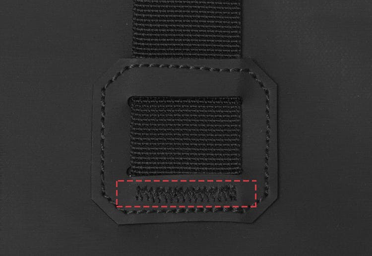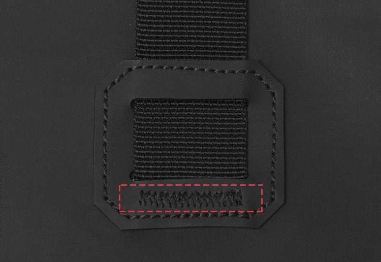 すべての縫い目には補強処理がされており、ベルトとバッグを繋ぐ箇所は特に強力な破損防止処理を施しております。
