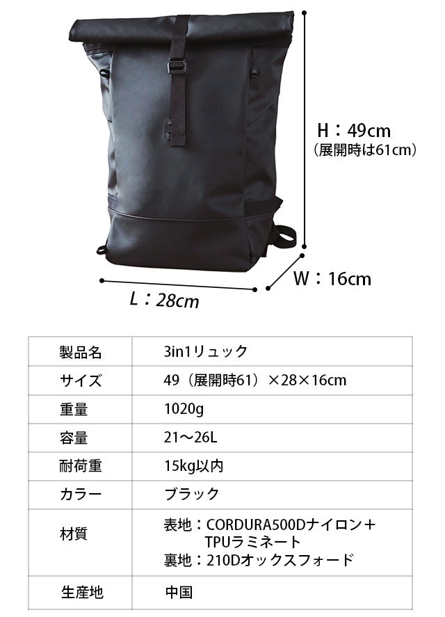 その想いから生まれたのが本製品「3in1リュック」です。未来まで続くその確かな品質で、あなたの暮らしを末永く支えます。