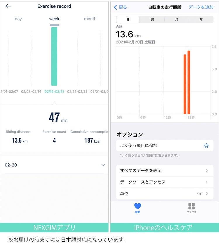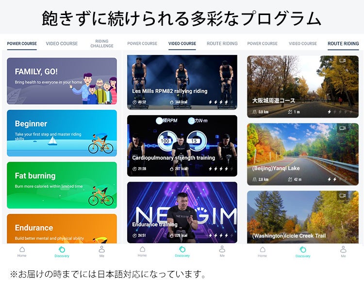 A:はい、専用アプリ「NEXGIM」はお届け時までには日本語対応になっています。ただしフィットネス(Video)の音声は日本語では無く、日本語字幕となります。