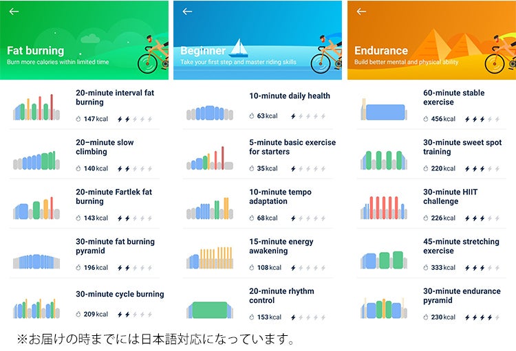 A:アプリ内のコースは日々開発中ですので、トレーニング(Power)、フィットネス(Video)、サイクリング(Route)いずれも追加予定です。すべてのメニューを無料で受けていただけます。