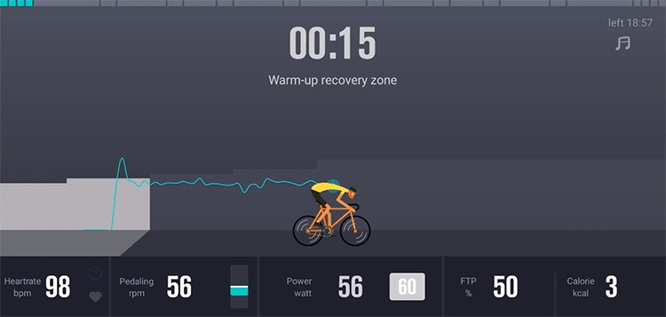 トレーニング(Power)のプログラムには非常に豊富で、入門コース、脂肪燃焼コース、筋力UPコース、持久力UPコースなど各コースごとに沢山のパターンを取り揃えています。負荷が自動で変化するので余計な手間は一切不要!ペダルを漕ぐだけで筋肉への最適な刺激が得られます。またペースを下回ると「頑張って!」と応援してくれるのも嬉しい機能です。