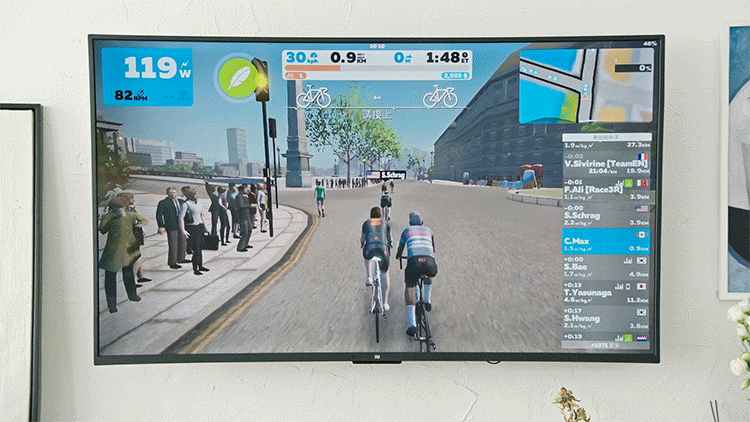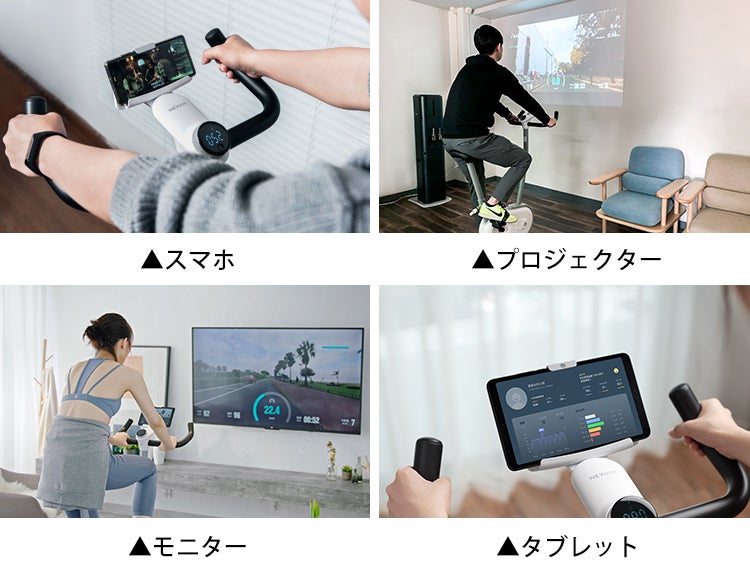 さらにZwiftなど多数のアプリとも連携でき、世界中の仲間と走れるので「飽きてしまう」という従来のエクササイズバイクの弱点をクリア。3日坊主になりません。