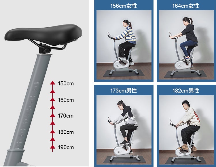 本体サイズやシートの形はアジア人の体型に合わせたちょうど良いサイズ感になっており、老若男女問わず安心してお使い頂ける仕様になってます。長時間の運動でも疲れないよう柔らかい作動になっているのも嬉しいです。