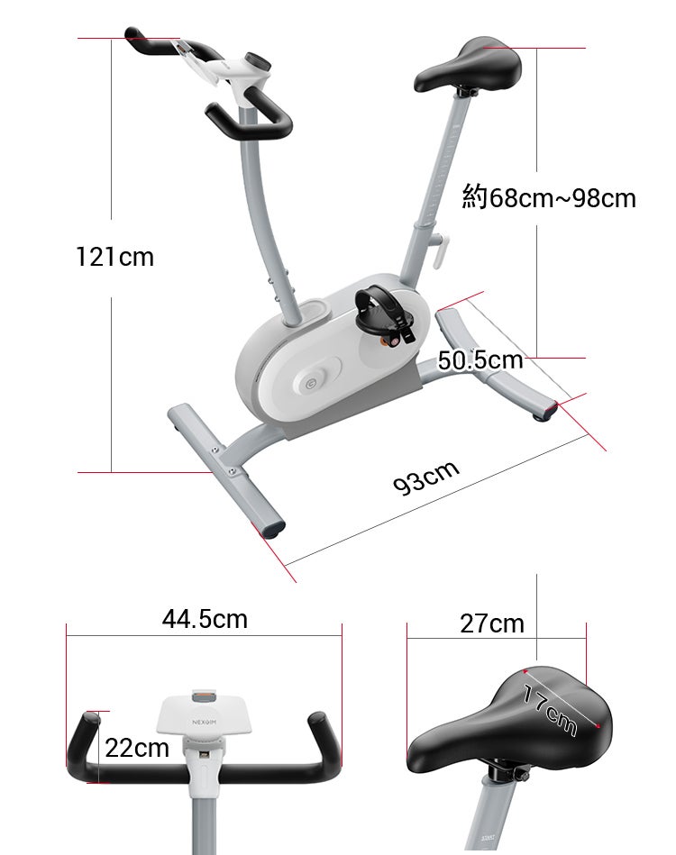 サドルの高さは68cmから98cmまで無段階に調整が可能なので、自分の身長に応じて細かく調整することが出来ます。姿勢もペダルの負荷もすべてがあなたのための1台になるのがAIエクササイズバイク「NEXGIM MG03」です。