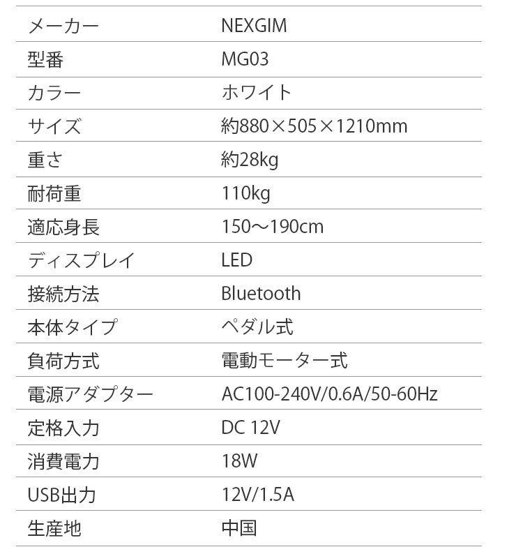 「NEXGIM MG03」は製造メーカーであるMagefitnessと弊社が商標登録している自社ブランド「zepan」とのコラボ商品です。先端技術を持ったフィットネス機材メーカーの技術力に、家電製品を数多く販売してきた「zepan」の視点が加わることで、より使いやすく、使用者一人ひとりの体力に合わせて負荷設定をカスタマイズ出来るようになりました。また日本の住宅事情を考慮したコンパクトなデザインと静音性を追求したため、毎日24時間いつでも気にせず自宅でエクササイズをしていただけます。