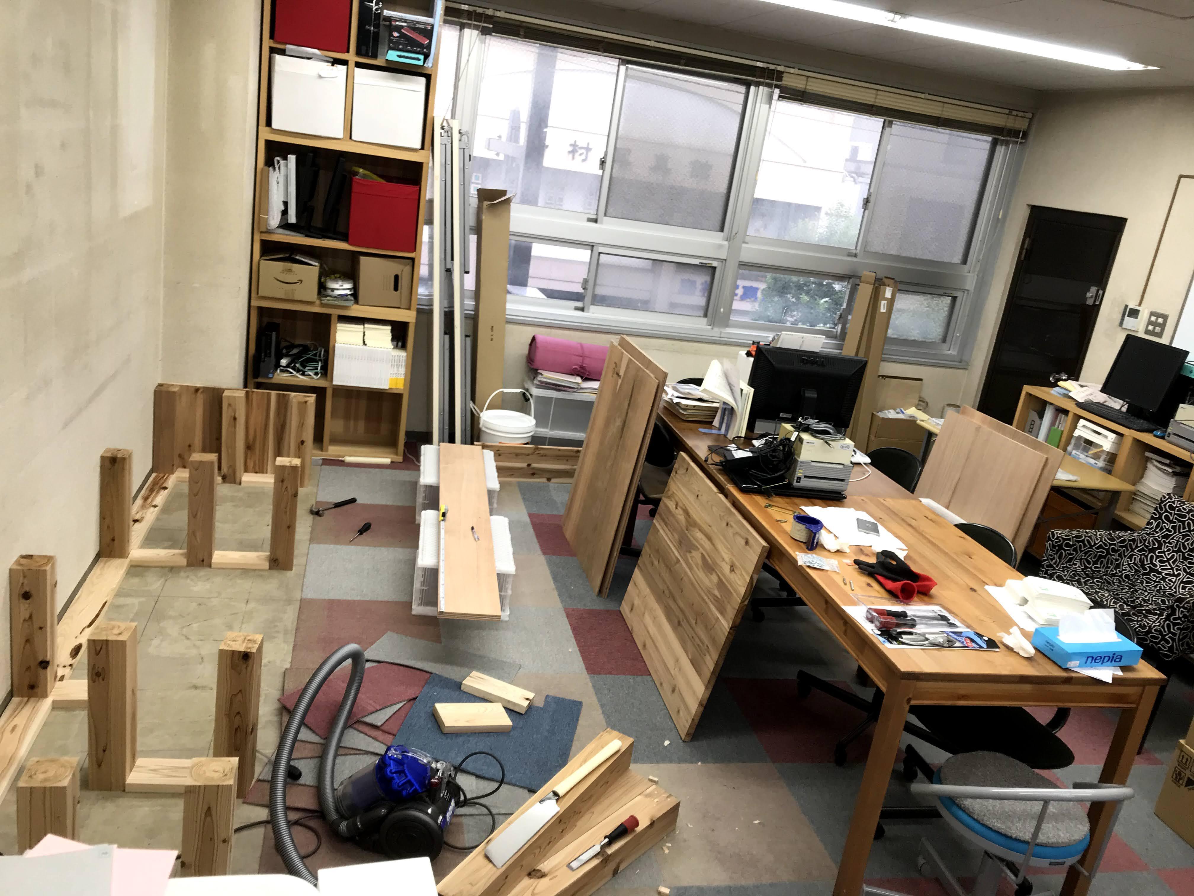 さて、この上に本棚を組みます。