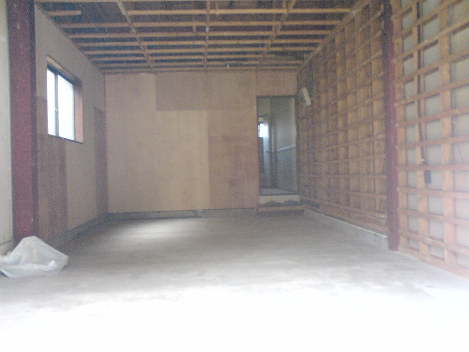 内装工事前の借りた時の状態です。細長い空間で、奥には和室とトイレが。(2008/10/18)