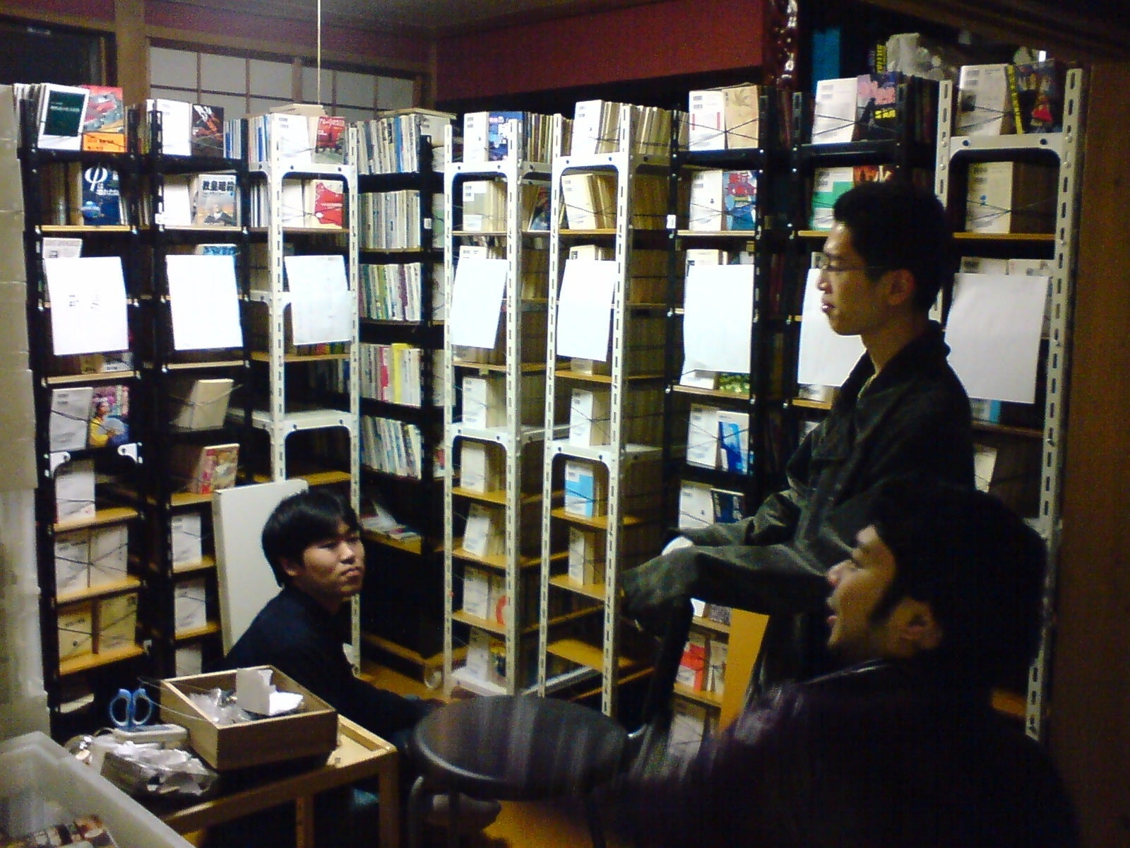 工事も終わってオープン準備中。寄贈本やボランティア募集が自販機で・・・(2009/1/6)