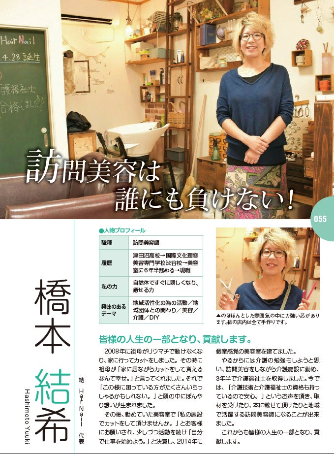 橋本結希ちゃんは、船橋市高野台を拠点に訪問美容室「結 Hair Nail」を経営し、訪問ヘアカットをしている美容師さんです。