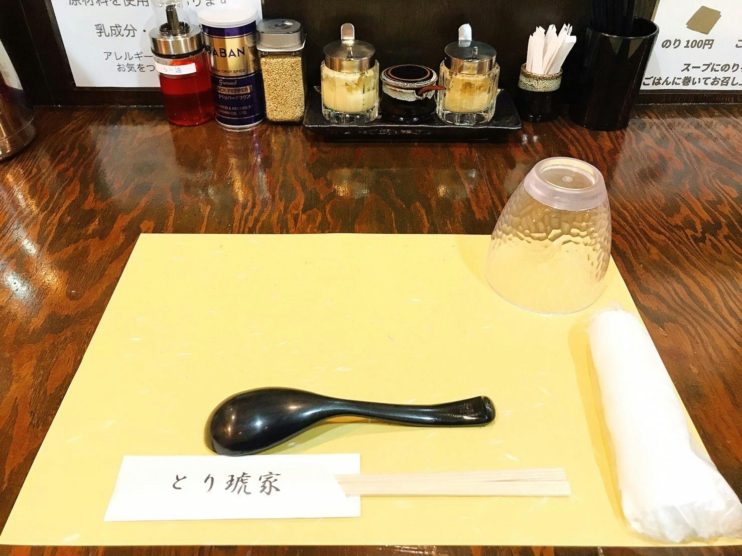 とり琥家の『琥』は上品さという意味があります。女性店長だからこそ、居心地の良い店内や気遣いにこだわりました。当店はラーメン屋としては珍しく、敷紙にタオルのおしぼりとレンゲ、割り箸をセッティングしています。割り箸には特にこだわりがあり、料亭でも使われている奈良の吉野杉のものを取り寄せ、お客さまが食べる際に手が痛くならないようにしています。また、これもラーメン屋としては珍しく、カウンター前は厨房が見えないような設計にしています。人の目を気にせず、落ち着いて食べていただきたいと考えたからです。