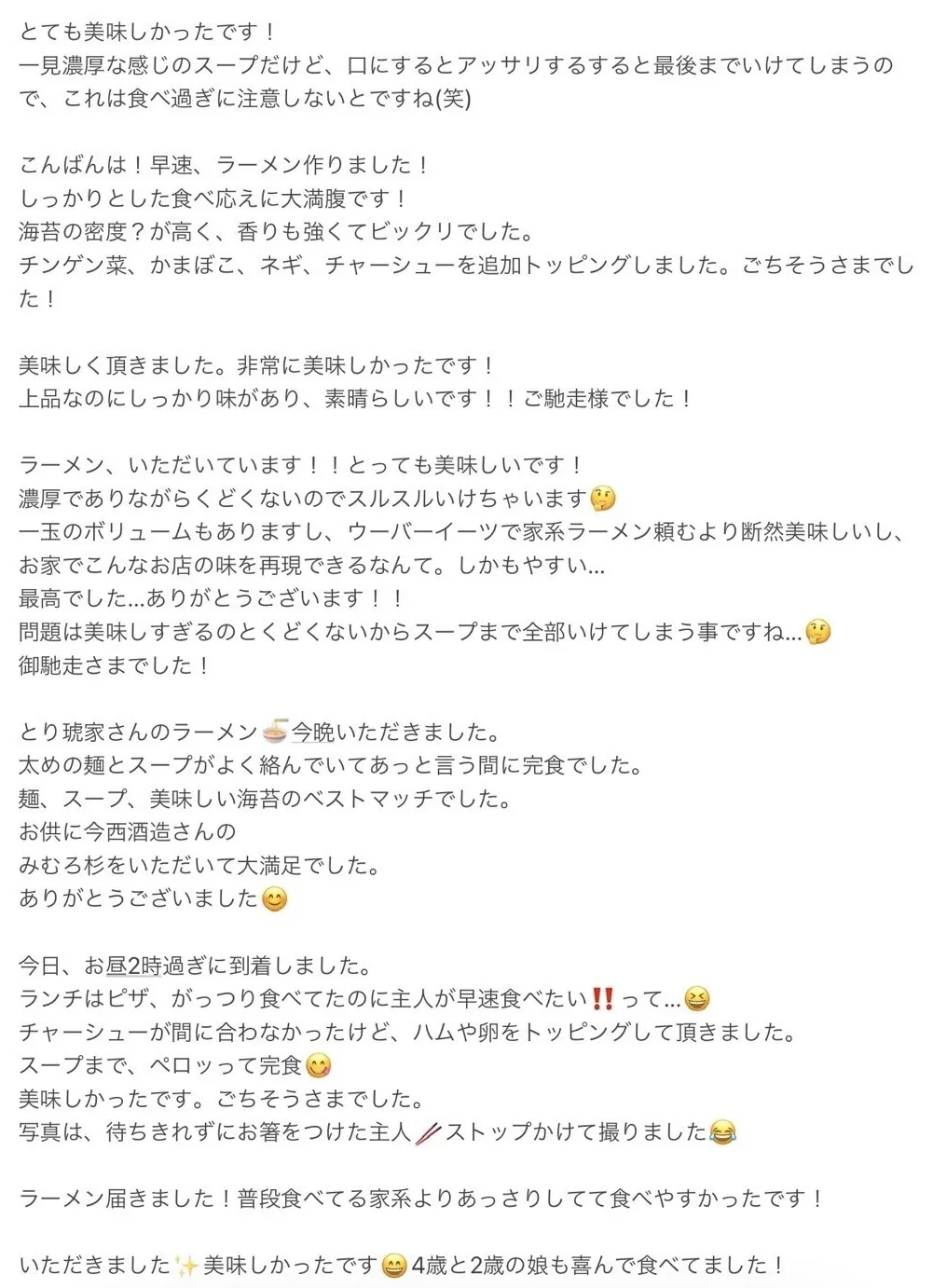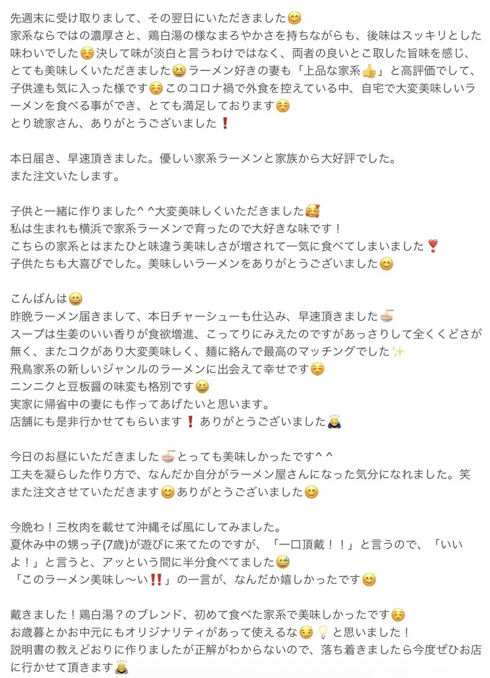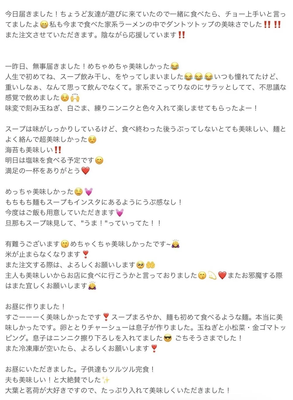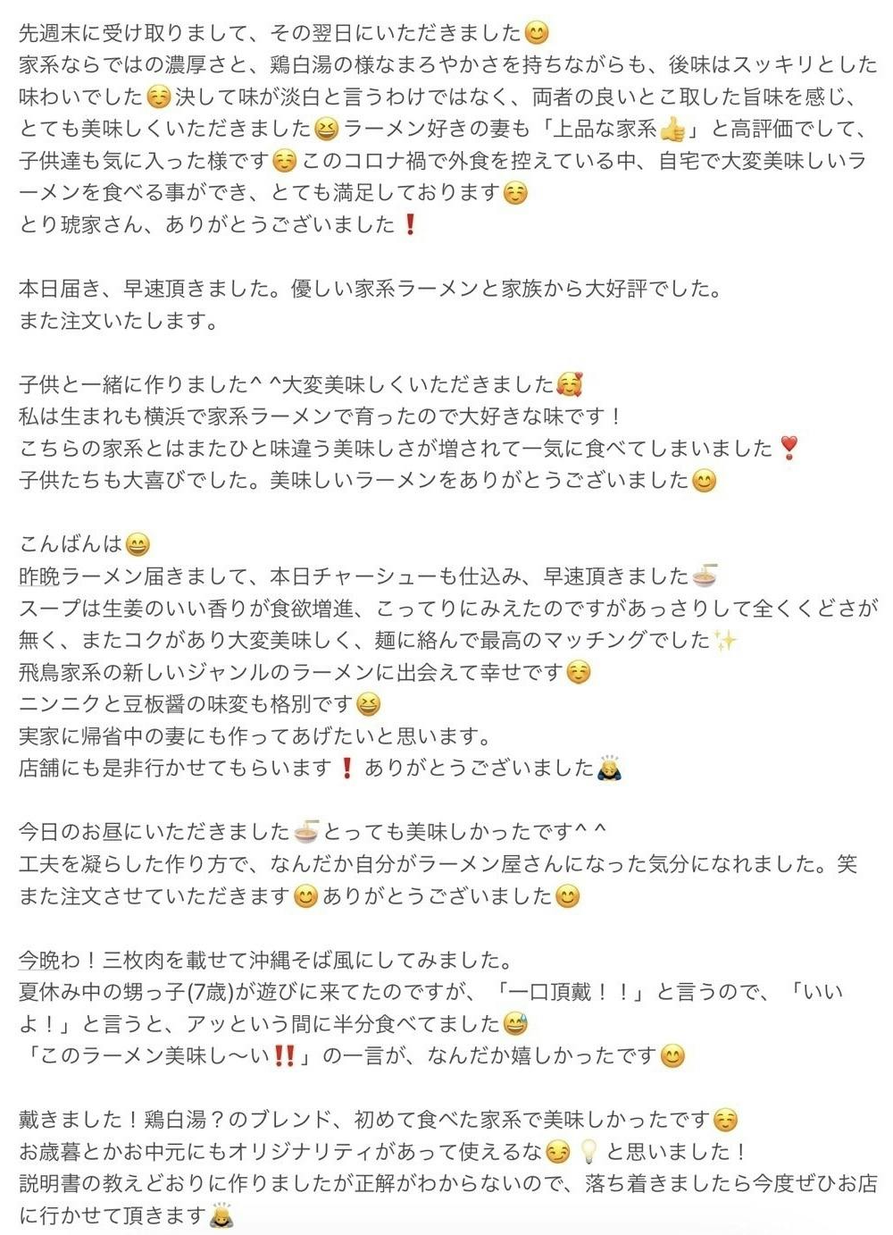 また、有り難いことにお取り寄せ『Myらーめん』のご感想をたくさんいただいており、どれも励みになるもので選び切れません。そのため、ページの最後の方に載せていますので、そちらもご覧いただけたら嬉しいです!!