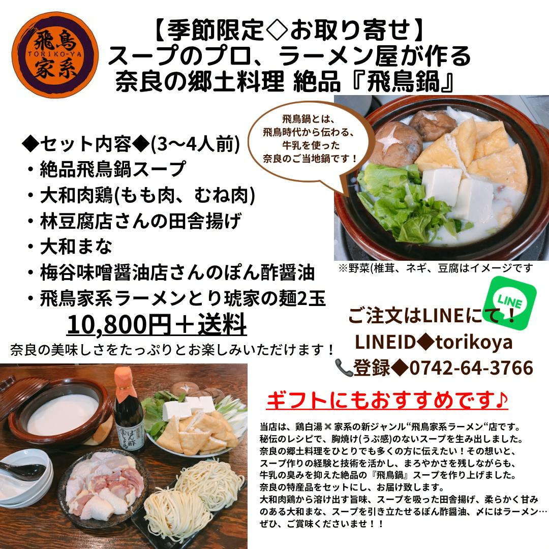 その名も、【スープのプロ、ラーメン屋が作る奈良の郷土料理 絶品『飛鳥鍋』】