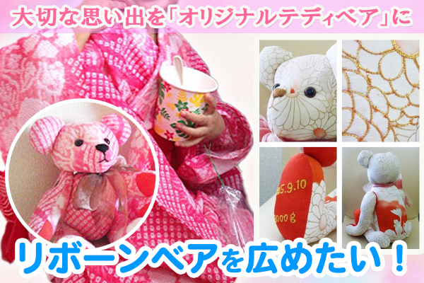 生前整理や遺品整理の仕事をする中で他人から見ればすぐ処分出来るものでも、見えない思い出が整理品の中に詰まっていました。仕事を通して出会った人からは処分してしまうのは「寂しい」「もったいない」と言う思い、そのまま残すには場所がない、管理しきれないなど様々な状況を聞いていました。思い出の生地で作れるリボーンベアは何時でも触ることの出来る心のアルバムでもあります。