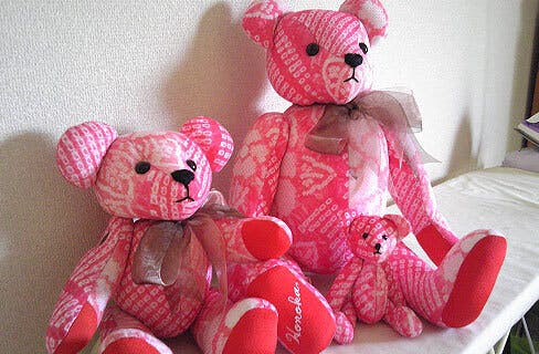 家族の大事な思い出の生地を、かわいいベアに生まれ変わらせるサービスです。