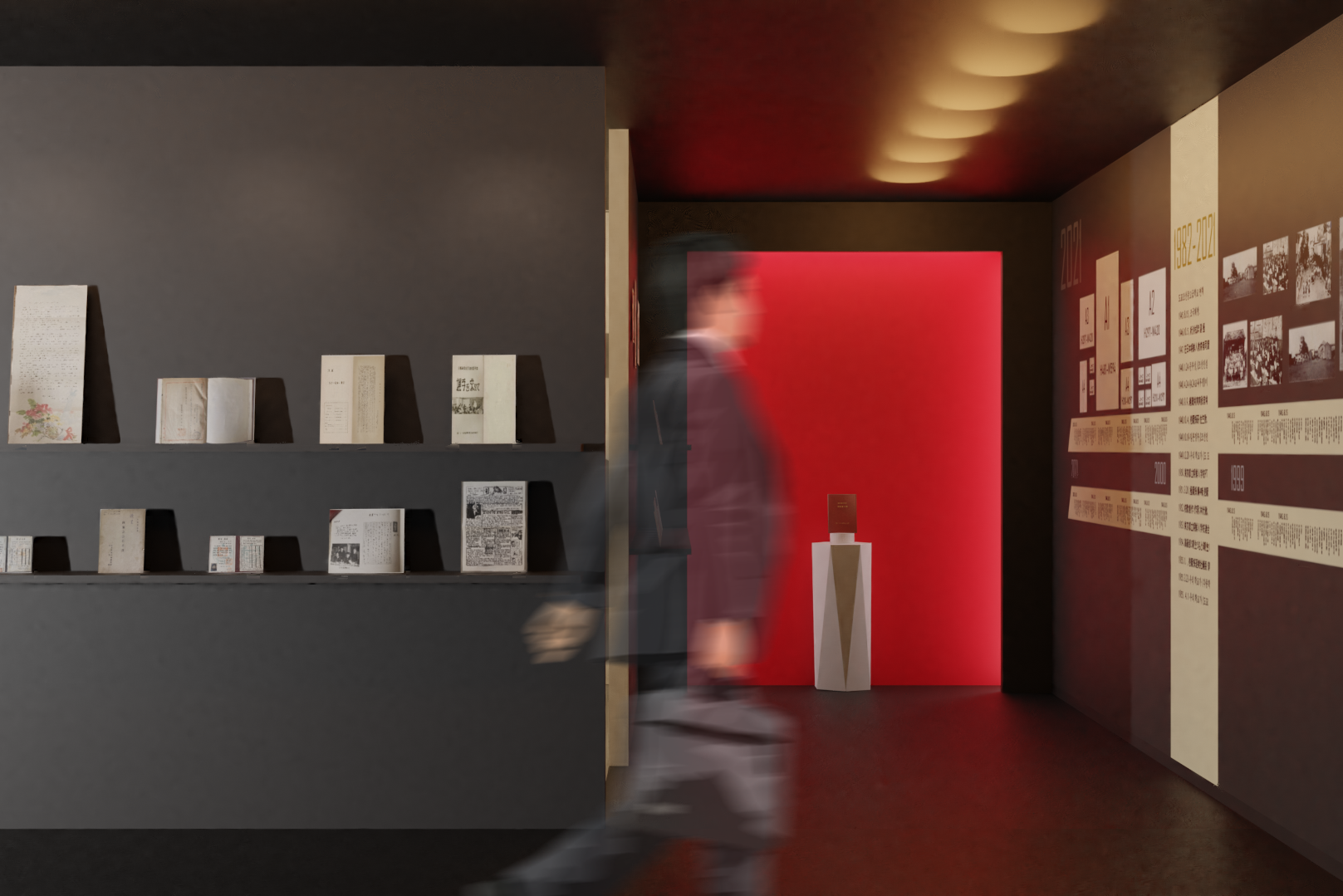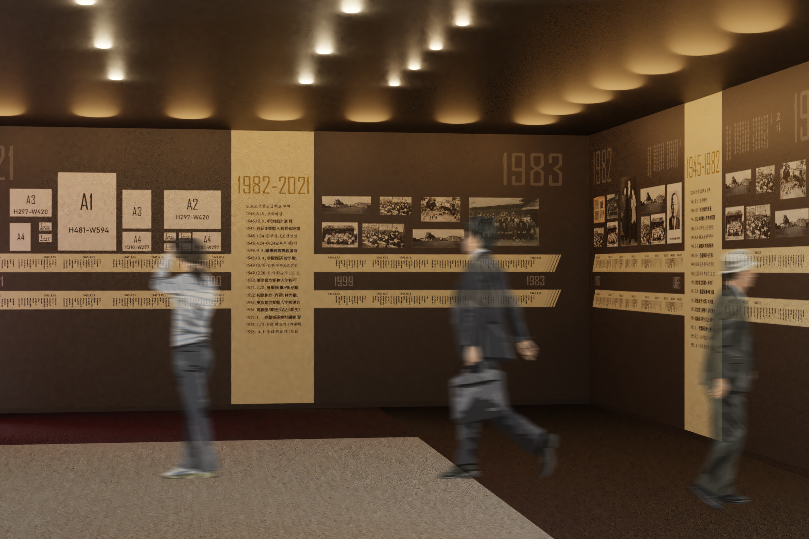 沿革室は大きく沿革展示エリアと現在みらいエリアに区分けし、どなたでも無理なく参観できるようデザイン性を重視しました。