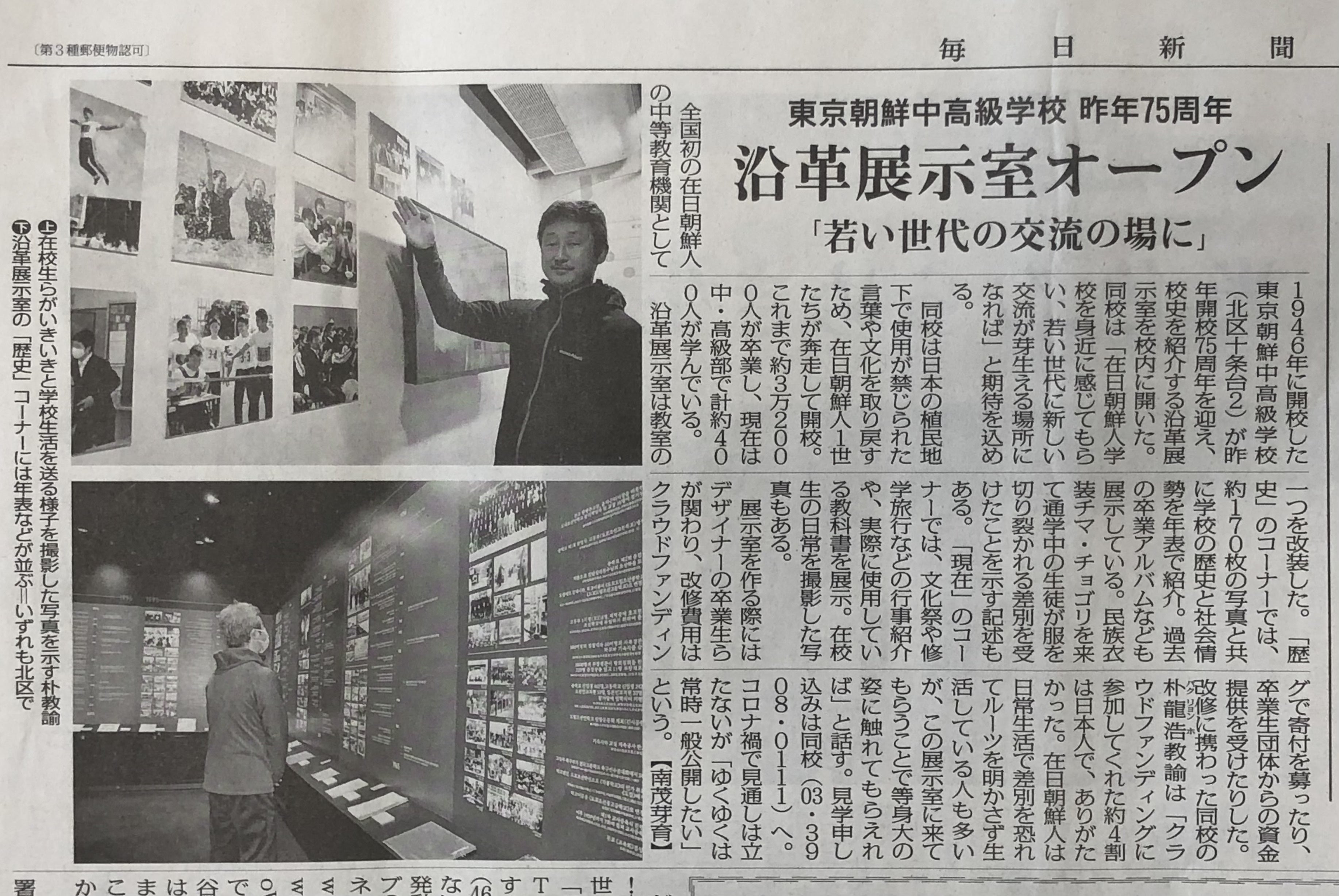 東京都北区十条の東京朝鮮中高級学校に学校沿革室をつくります。
