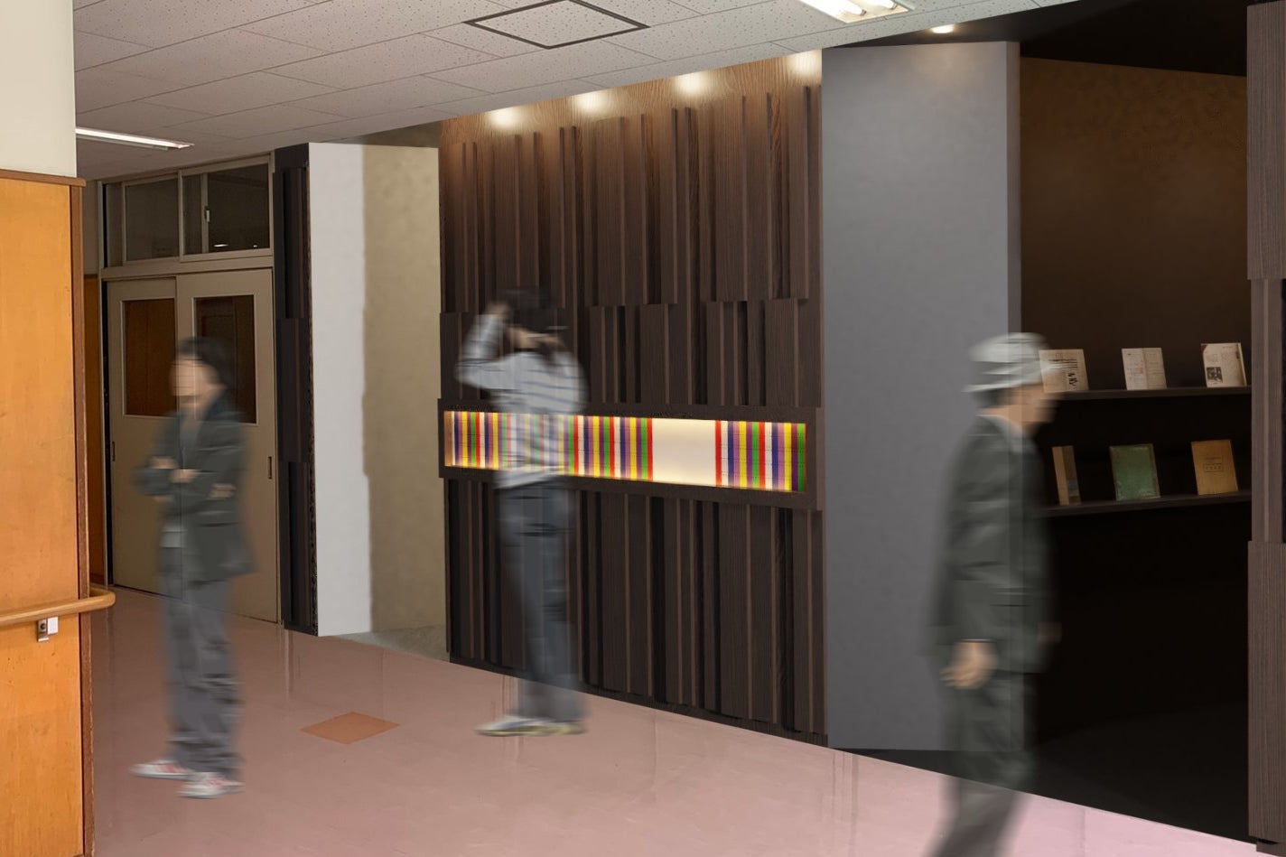 また、沿革室前にウェイティングゾーンを設けて交流スペースとして活用するアイデアなども考えています。