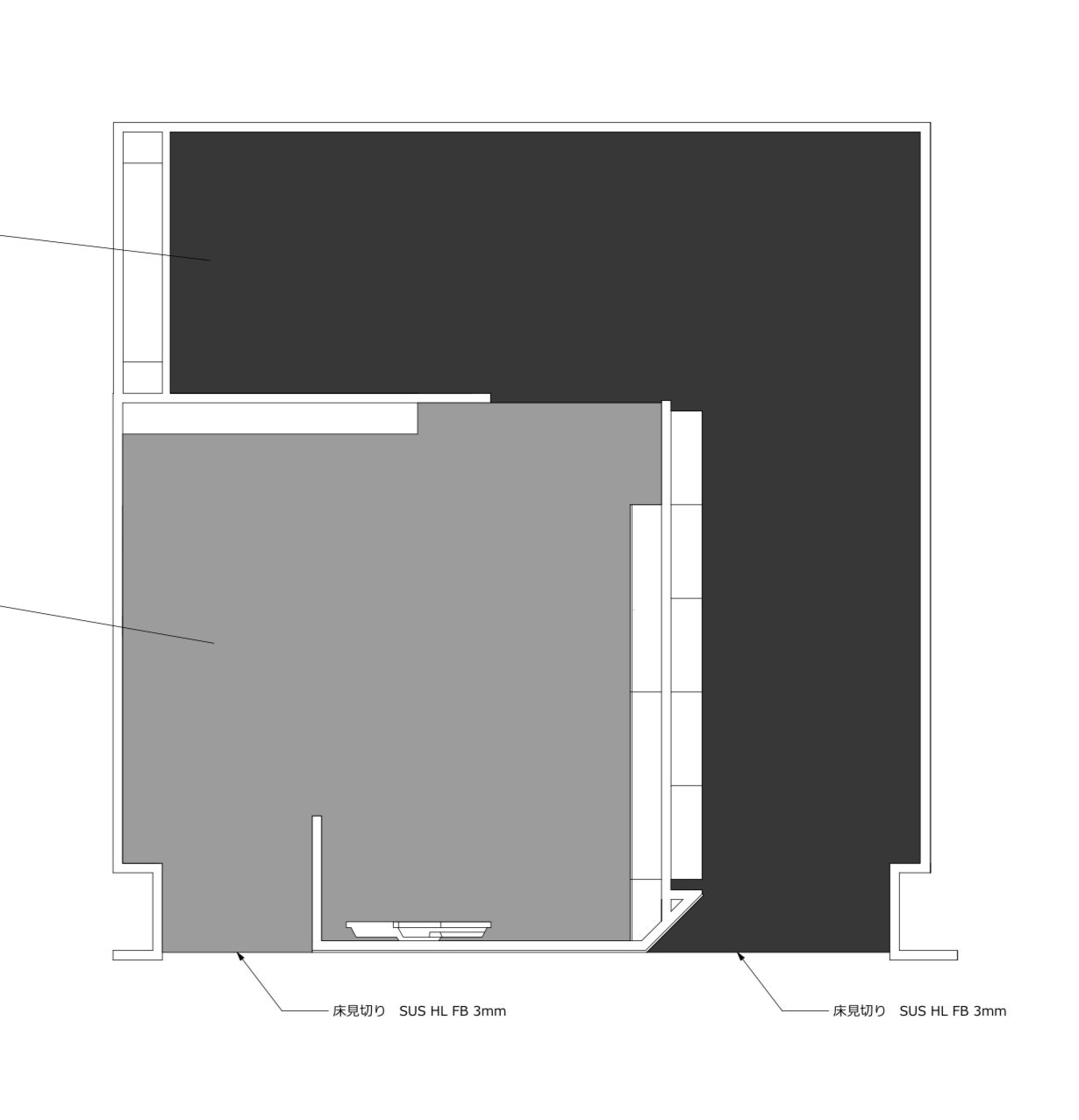 沿革展示エリア(黒)、現在みらいエリア(グレー)