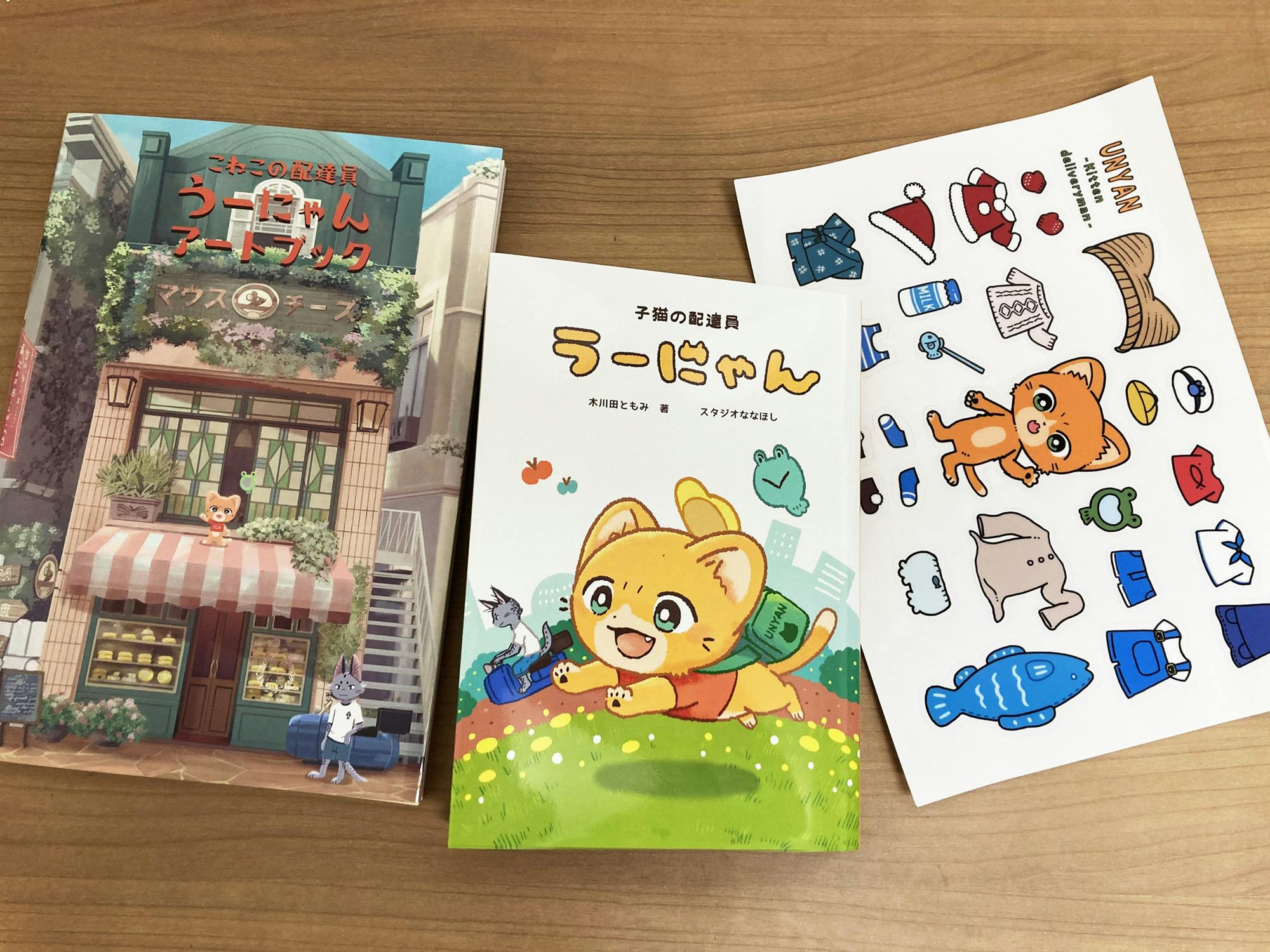 2022/08/25 23:30大変お待たせいたしました。『子猫の配達員 うーにゃん』のリターン品となります、コミック、アートブック、着せ替えシール、サイン入りアフレコ台本、手描きイラストを発送させていただきました!また、デジタルコミック、デジタルアートブックのダウンロードリンクもメッセージでお送りさせていただきました。(リターンの内容はコースにより変わります。個別にメッセージをお送りしておりますので、詳しくはそちらをご確認ください。また、サイン入りアフレコ台本は、コミック等と別便でお送りさせていただいております。コミックより1~2日遅れてのお届けとなりますので、少々お待ちいただればと思います。 )コミックは、twitterでアップした漫画全てカラーで掲載しており、描き下ろしのミニイラストが追加されております。アートブックは、キャラクター設定、美術設定、絵コンテ、イラスト、さらにスタッフや声優さんのコメントも掲載しております。自費出版ながら、カバーもつけたので、リッチな見た目に仕上がっているかと思います。着せ替えシールは、何度もつけたり剥がしたりできる素材で作成しておりますので、是非遊んでみてください。また、9月4日に東京ビッグサイトにて開催されます『コミティア141』にスタジオななほしも参加します!場所は【に09b】になります。猫型バッジ、ステッカー、Tシャツ、トートバック、クッション、グラスなど、盛りだくさんグッズを作成しました。(受注生産のものもあります。)会場にお越しの際には、コミック等お持ちいただければサインさせていただきますので、是非お声かけ下さい!コミティア終了後には、オンラインサイトでも販売しますので、お楽しみにしていただけるとありがたいです。 もっと見るリターン品の送付時期につきまして