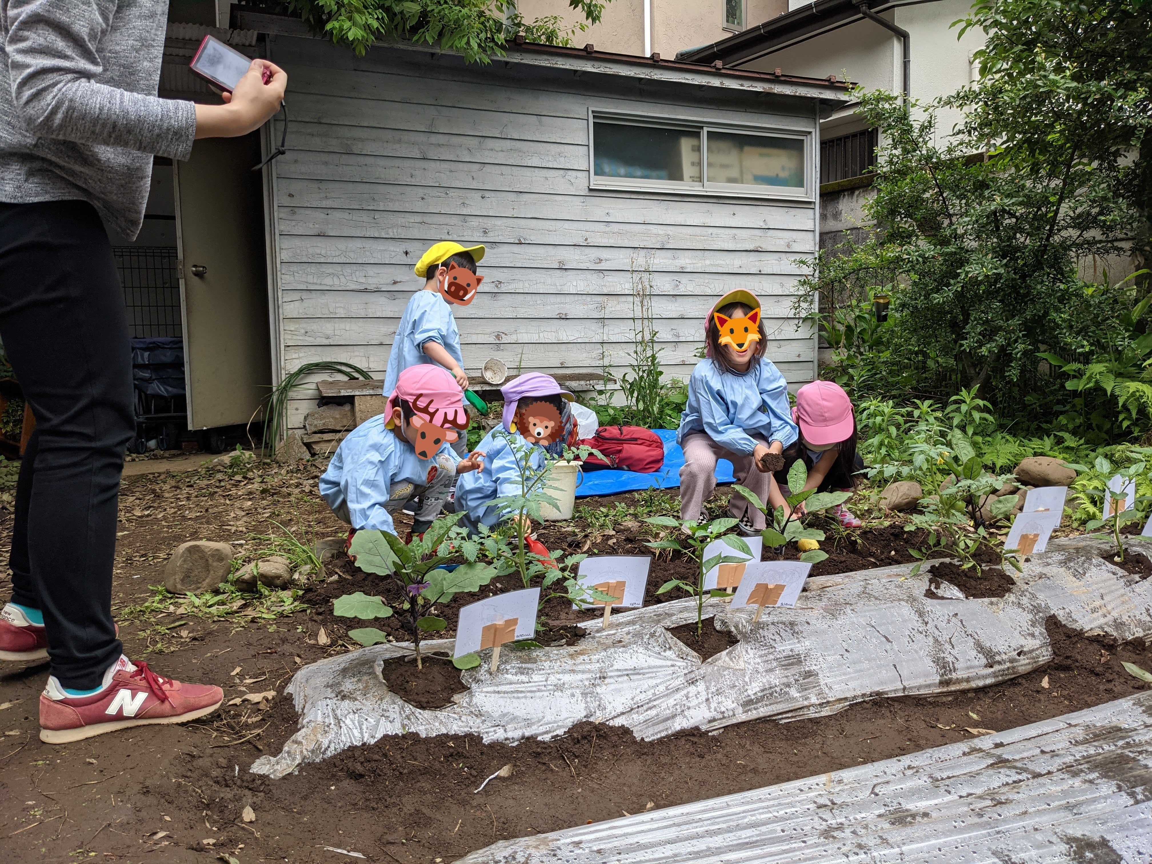 庭を畑にし、子どもたちと野菜を育てています