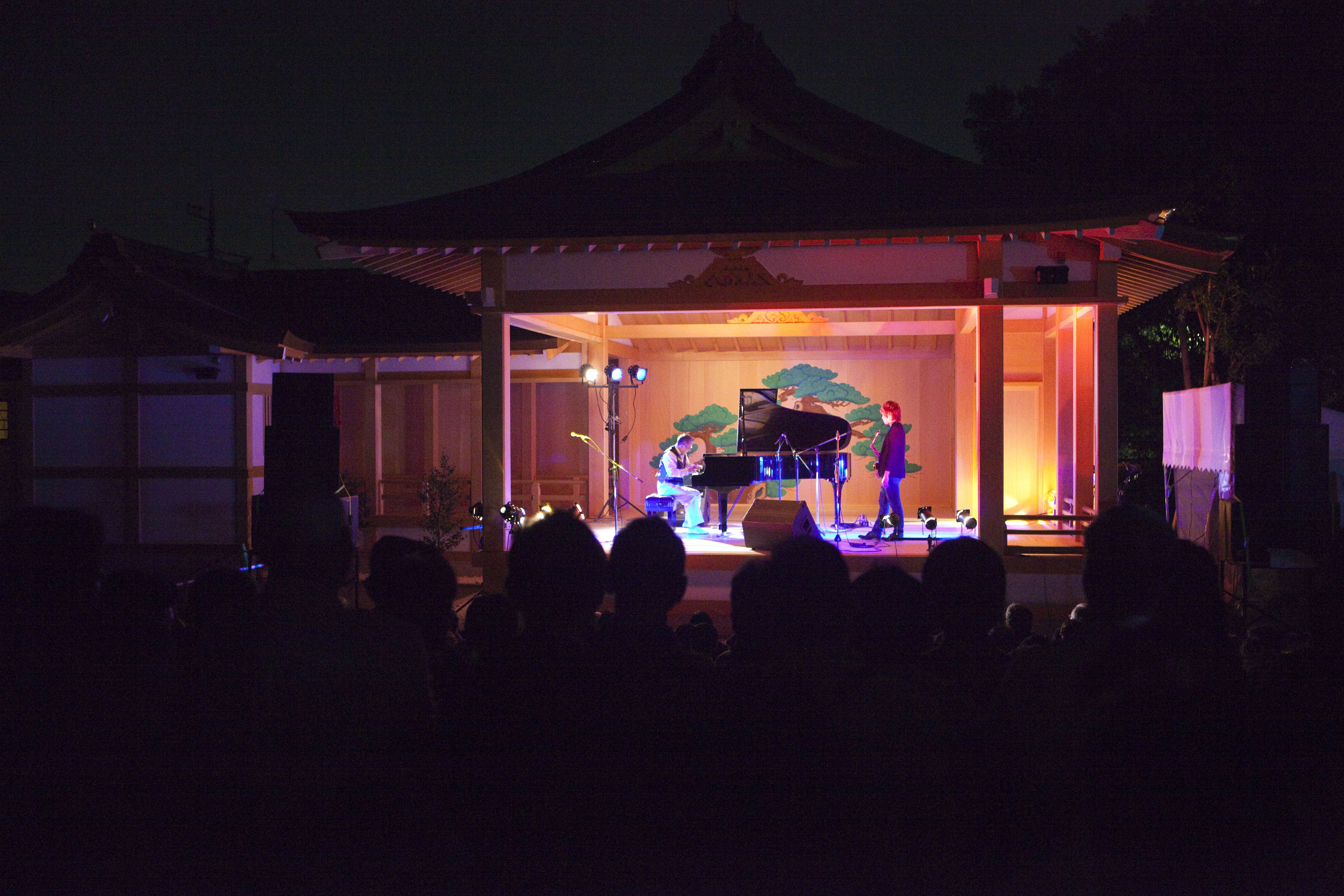 阿佐谷の神明宮の能楽殿での山下洋輔さんのステージ(阿佐谷ジャズストリート)