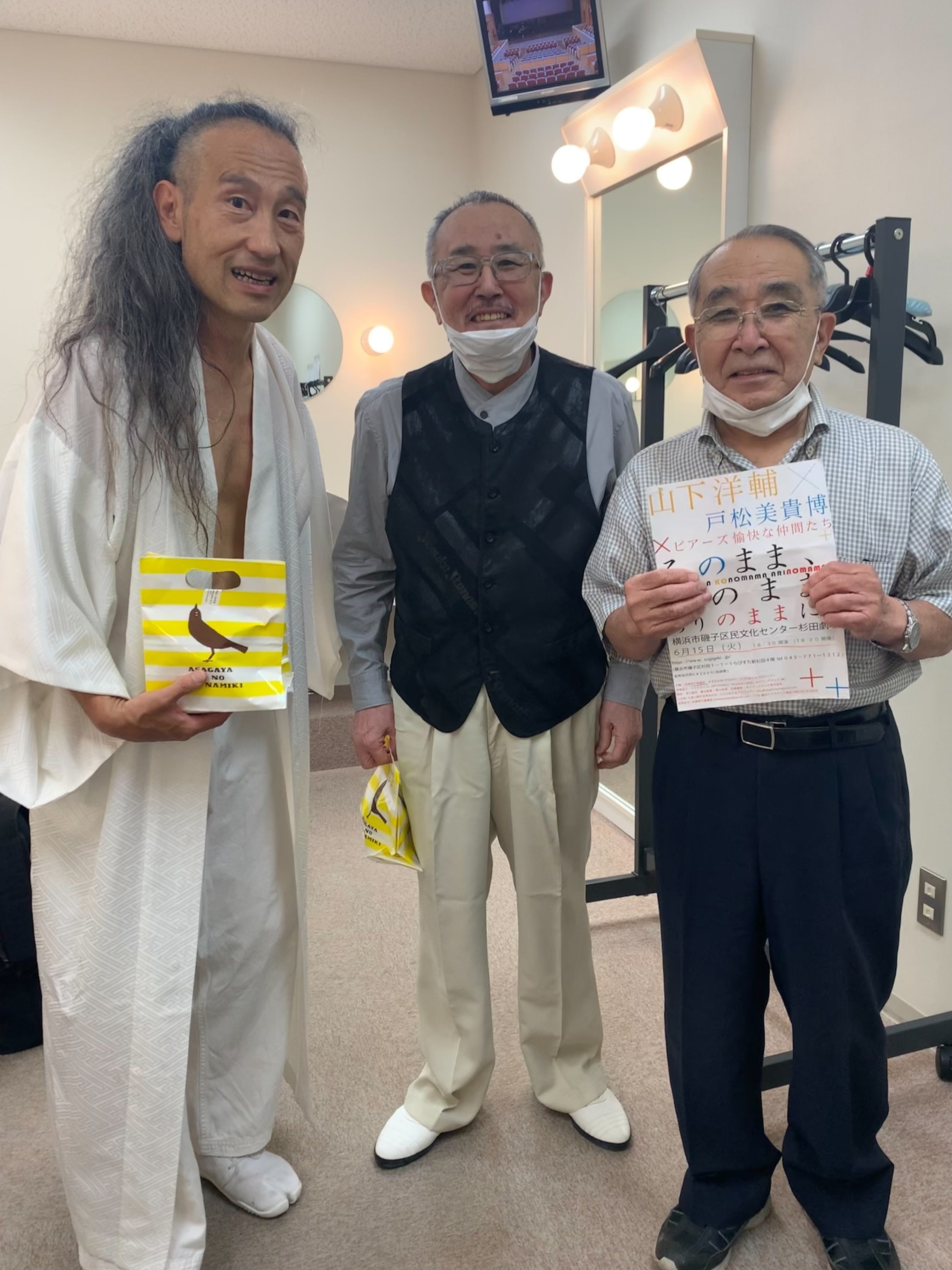 杉並区からご来場頂いた山下啓義さんは、じつは、山下洋輔さんのお兄様で琴古流尺八指南(その名は山下明童さん)、学生のころ洋輔さんをジャズの道へと引きずり込んだ張本人としても良く知られている方です笑!