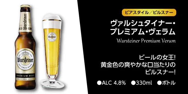 ドイツ、アルンスベルグの森の上質な軟水を使用する事によって、軽く爽やかな仕上がりとなっています。透明感のある黄金色で爽やかな口あたり、バランスの良いマイルドな味わいとほのかな酸味が特徴のヴァルシュタイナーは、ユニークでプレミアムなビールに仕上がっています。