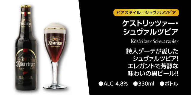 旧東ドイツで1543年に創業された黒ビール醸造会社。下面発酵で伝統的な原料を使用。上品で軽快、清涼感が心地良く、モダンな味わいを引き出しています。また、詩人ゲーテがこよなく愛したビールとしても有名です。