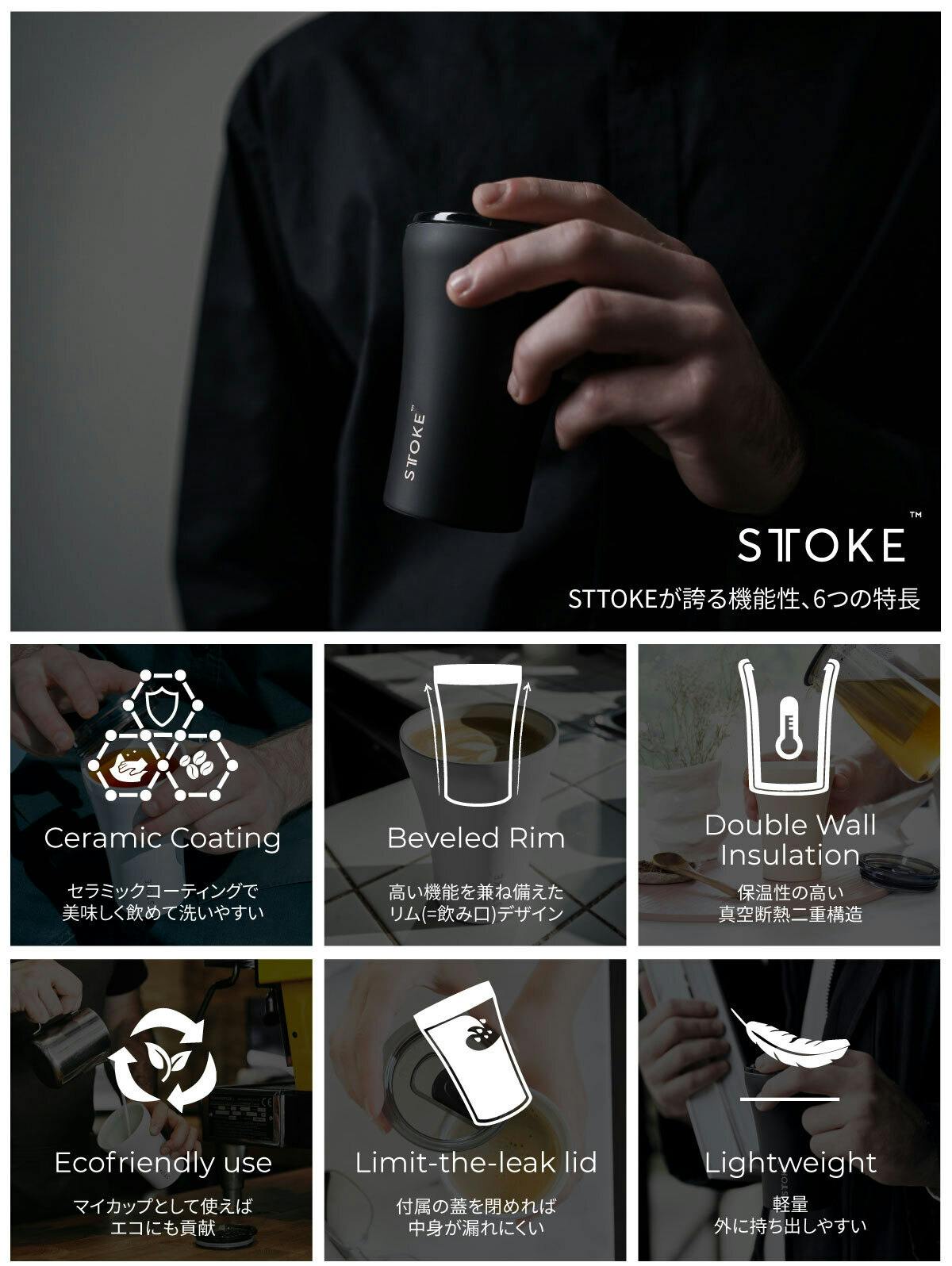 「STTOKE(ストーク)」は、オーストラリアで生まれた、真空二重断熱構造の新進気鋭のサーマルカップです。ステンレス素材をベースに、内側には陶器と同等の効果を持つセラミックコーティングを施しています。