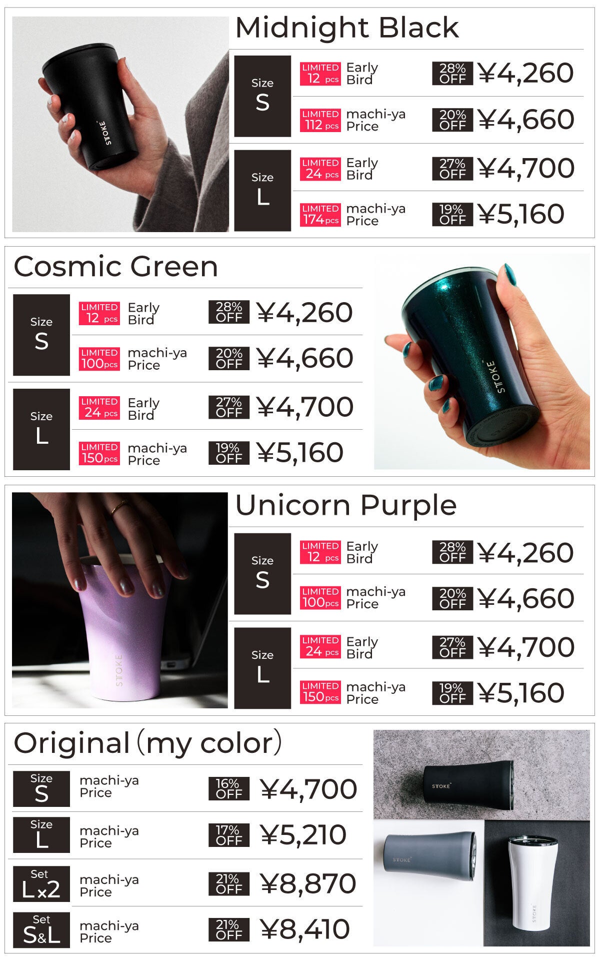 2021/08/23 11:01STTOKEの木村です。昨夜無事にプロジェクトが終了致しました。472名様にご支援いただき目標を大きく達成することができました。ご支援くださった皆様本当にありがとうございます。プロジェクトが終わりましたのでこれから作業を進め9月上旬までには発送・お届けできるように進めていく予定です。こんなカップを探した!デザインに惹かれました!と嬉しいお言葉もたくさんいただきました。抜群の保冷保温力、水滴ゼロ、金属臭が飲み物にうつらず最後まで美味しく飲める。小さいことだけど嬉しいことだと思っています。STTOKEひとつで皆様のちょっとうれしい。が増えていくことが楽しみです!お届けまでもう少しだけお待ちくださいませ!STTOKE Japan もっと見る