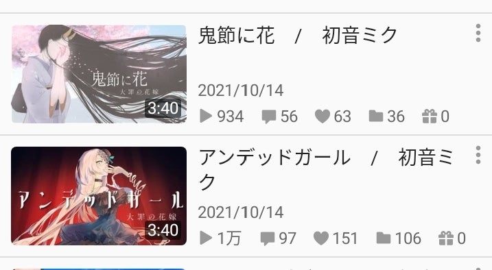アンデッドガールが 10000再生、151いいね、マイリスト106、を超えました!