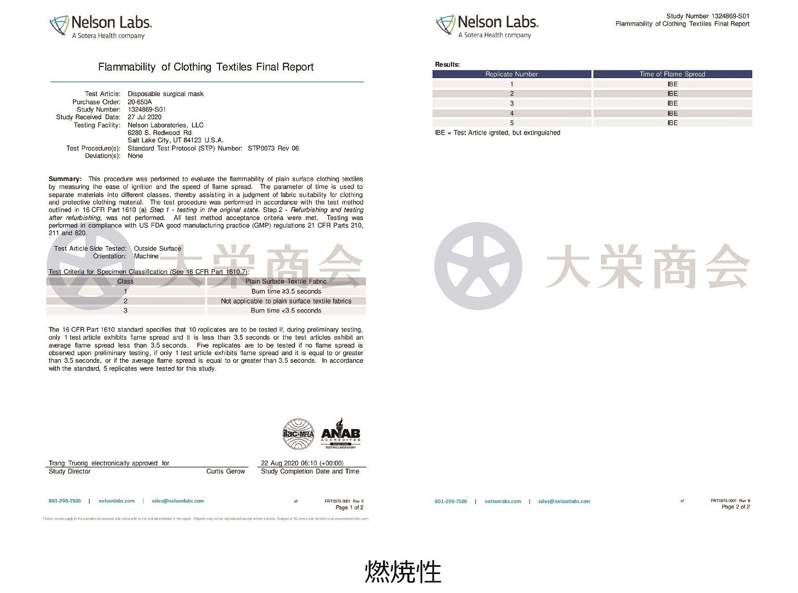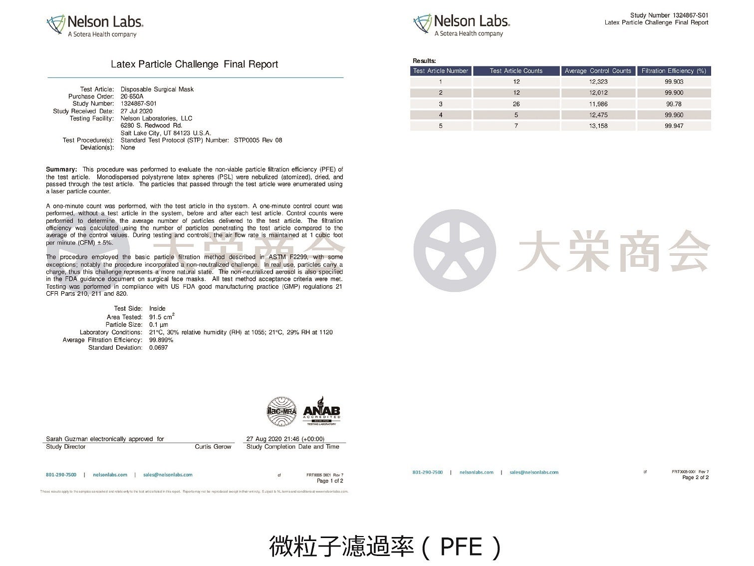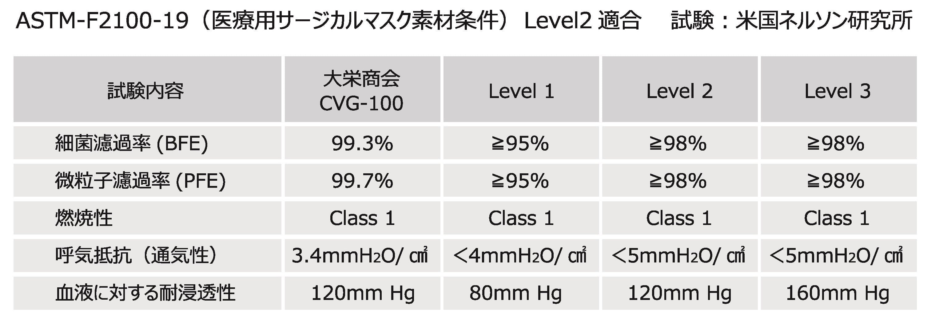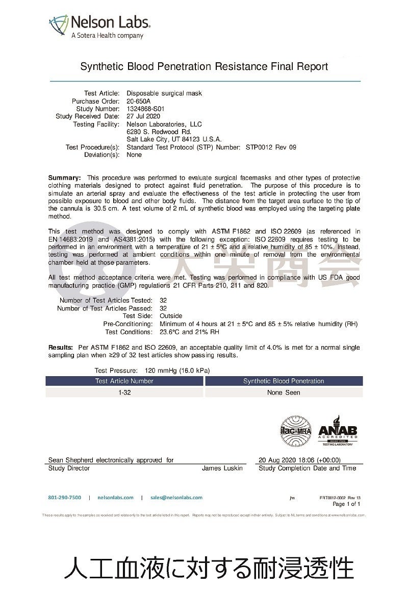 当社の不織布マスクはASTM(米国試験材料協会)LEVEL2に適合した性能を備えております。