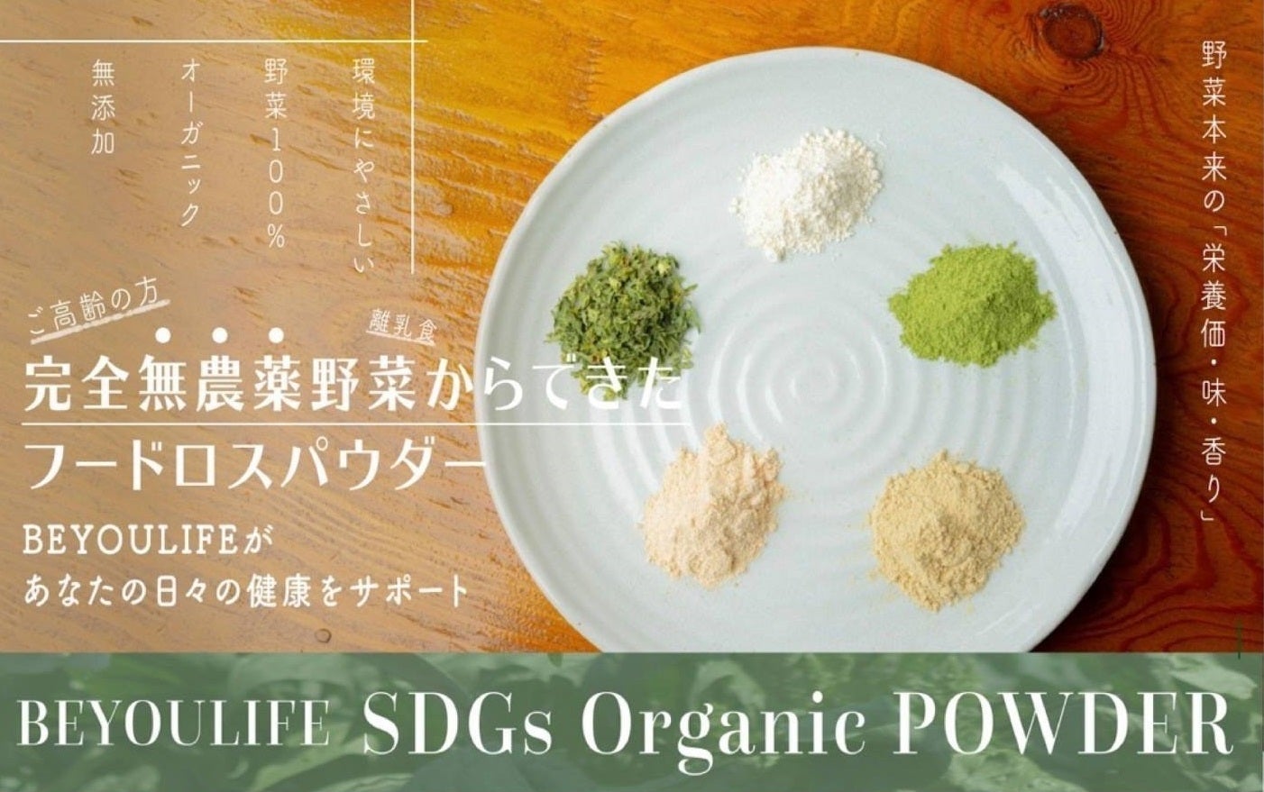 フードロスをなくしたい、という農家さんの気持ちと、香川県内の工場にあった「生の野菜を一瞬にして乾燥させ、粉末にできる」という技術が出会い、完全無農薬の野菜パウダーSDGs Organic POWDERが生まれました。