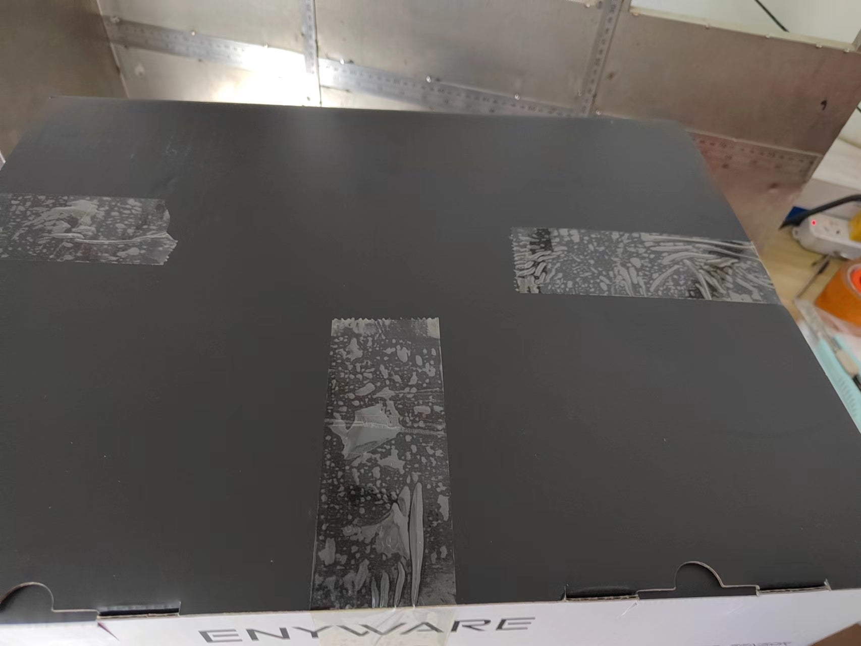 粘着テープがたくさん貼られていました。