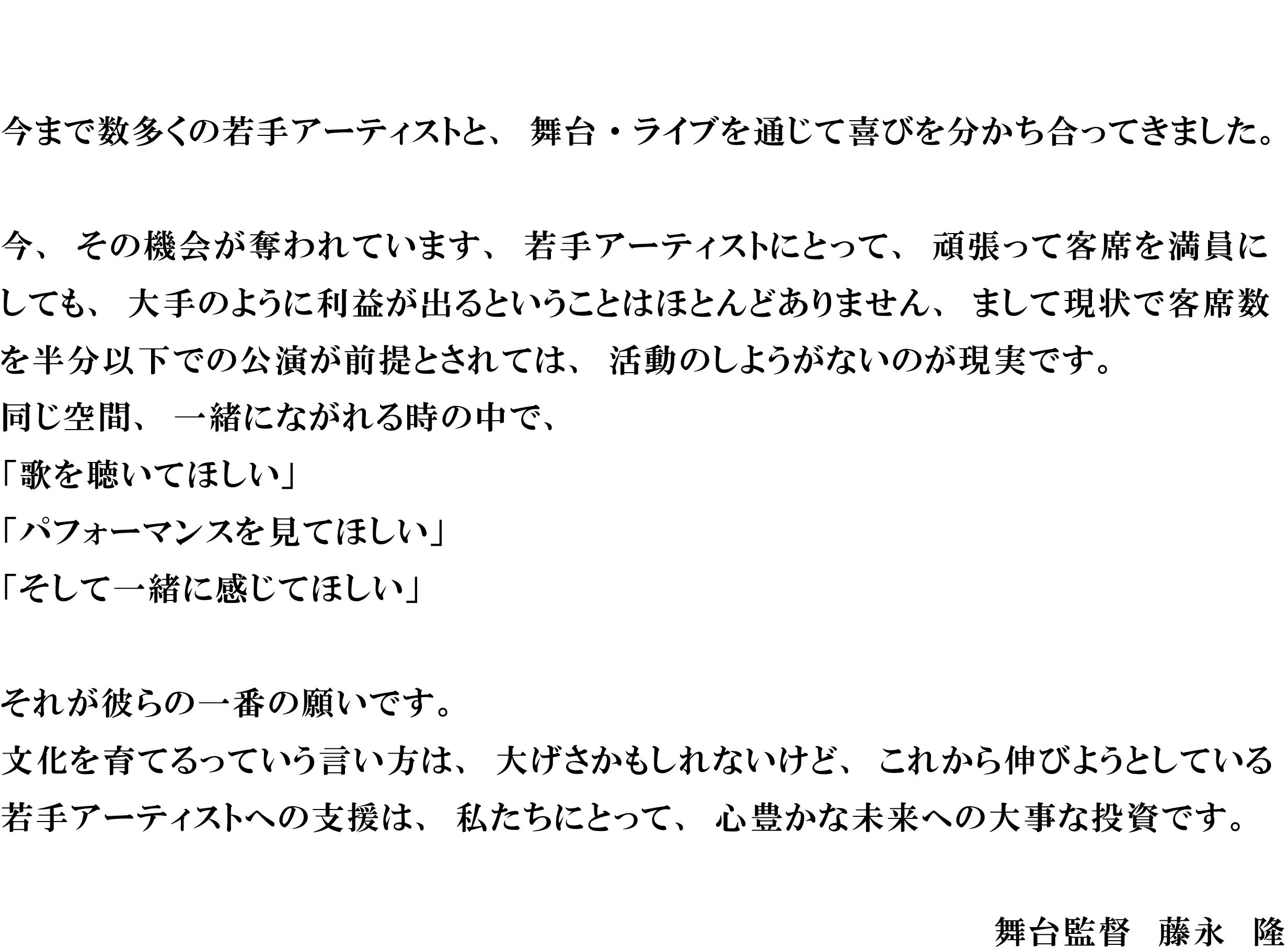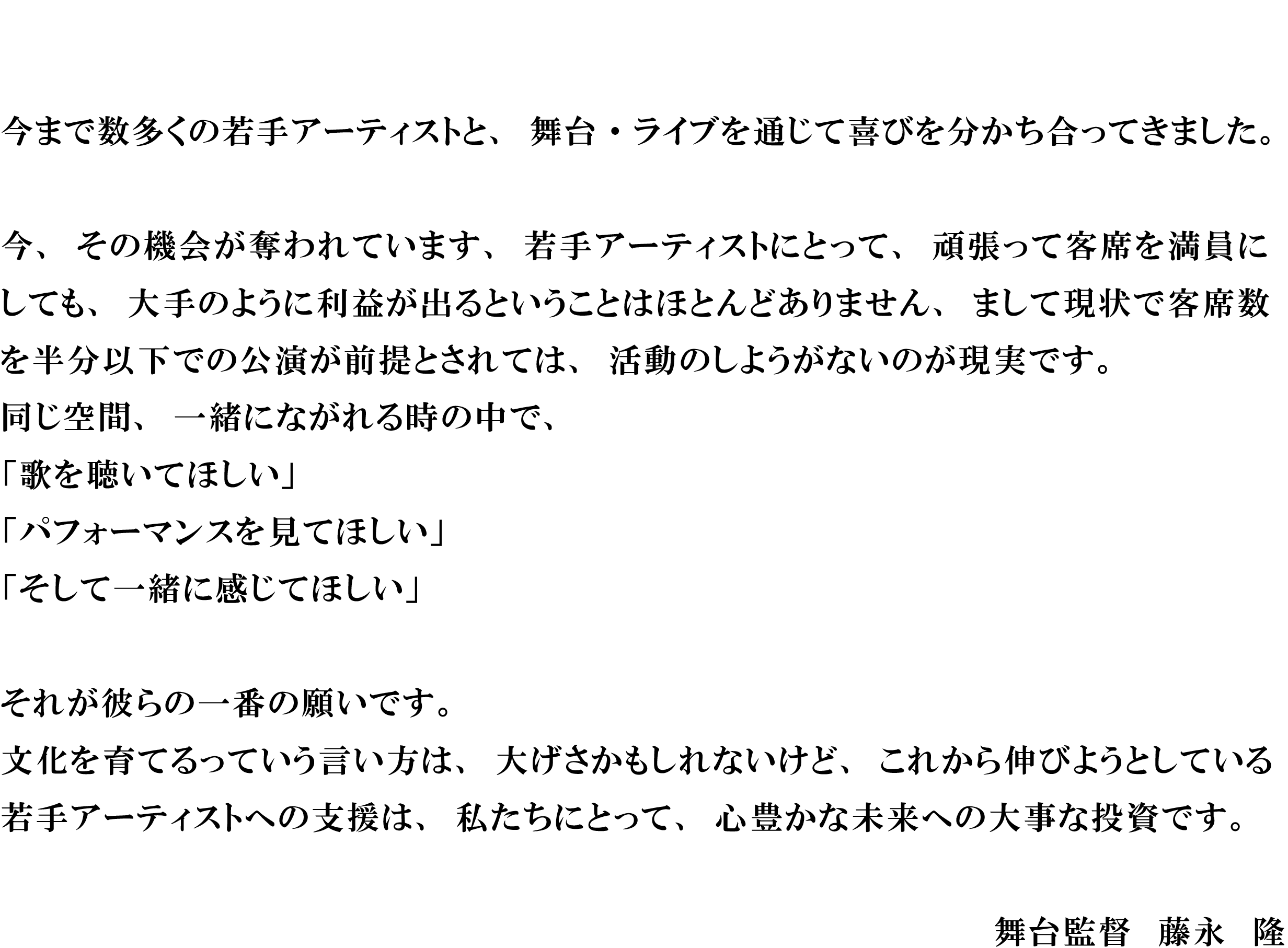 アーティストにとっての1年間の休業は成長の伸び代を失う多きな時間の損失になります。特に成長の伸び代が大きい子供たちにとって、1年はものすごく大きいです。