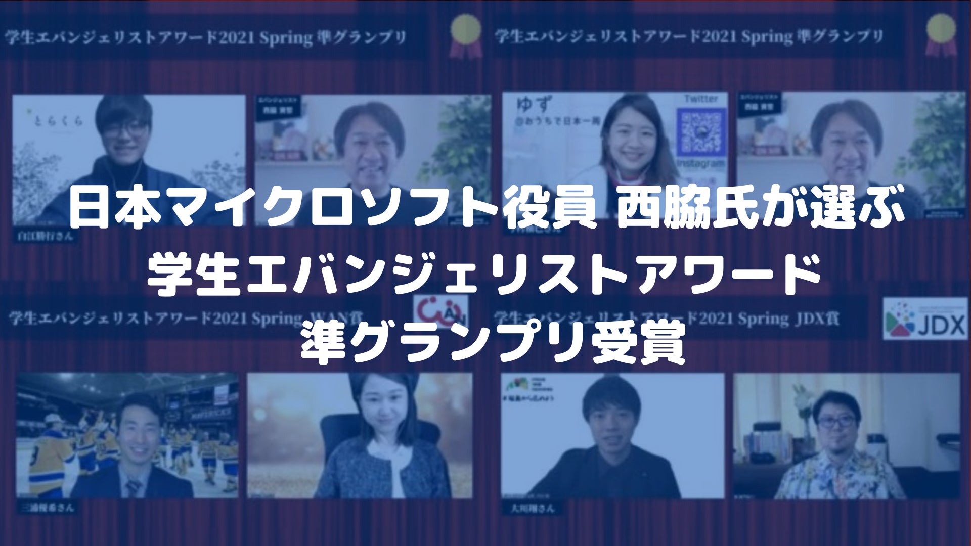 ① 日本マイクロソフト役員西脇氏が選ぶ日本学生エバンジェリストアワードで、代表の白江が準グランプリを獲得
