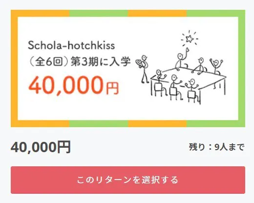 今日紹介するリターンはその“ Schola-hotchkiss(スコラホッチキス)”3期(全6回参加:オンライン)+「45の視点カード」です。