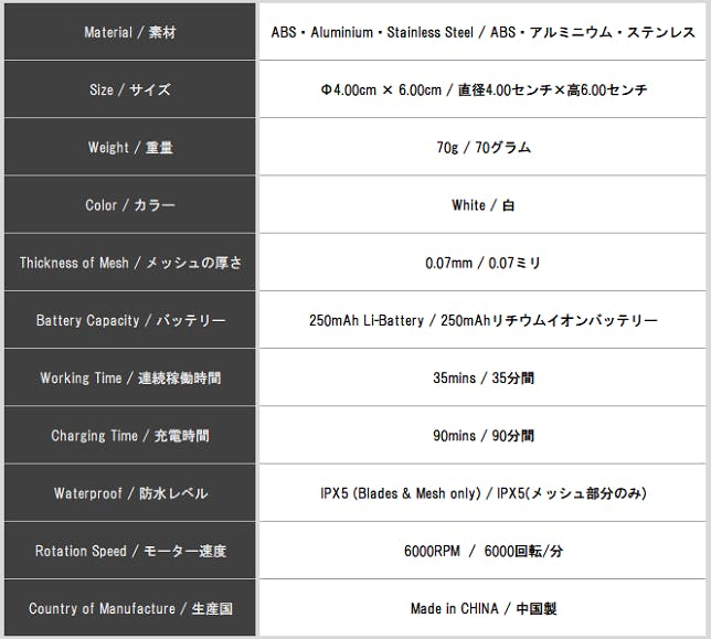 1. メッシュの厚さ : 一般的にシェーバーのメッシュの厚さは0.15mmといわれています。それに比べ”erinomainenポータブルミニシェーバー”のメッシュの厚さはわずか0.07mmと極薄です。