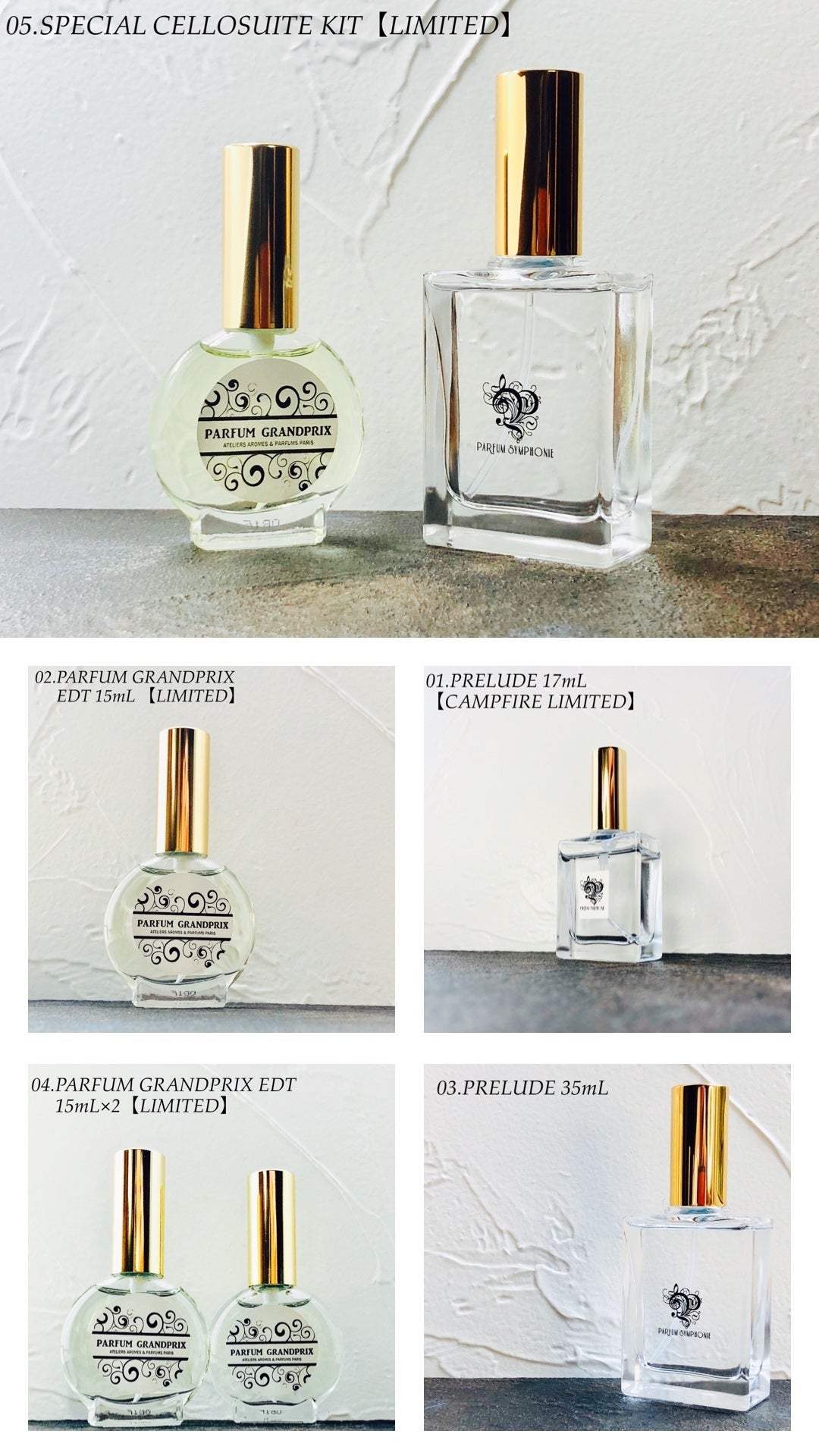 05.【SPECIAL CELLOSUITE KIT】【個数限定先着30名様分】 PRELUDE/前奏曲35mL8,800円+ PARFUM GRANDPRIX EDT/パルファン・グランプリオードトワレ 15mL 1本7,700円=16,500円+全国一律送料520円=合計金額17,020円