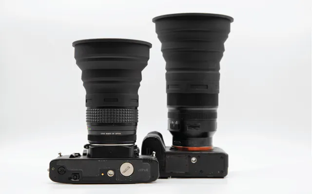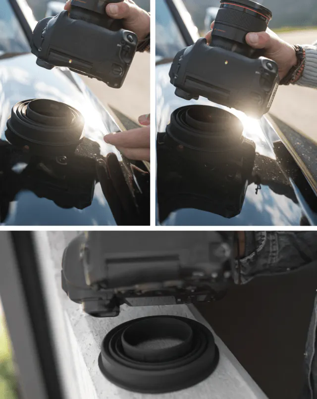 KUVRDのULHは、従来のラバー型レンズフードの課題だった型崩れを起こしません。柔らかい素材でありながら形状を維持できる設計のため、常時つけたまま、必要な時だけ広げてご利用いただけます。