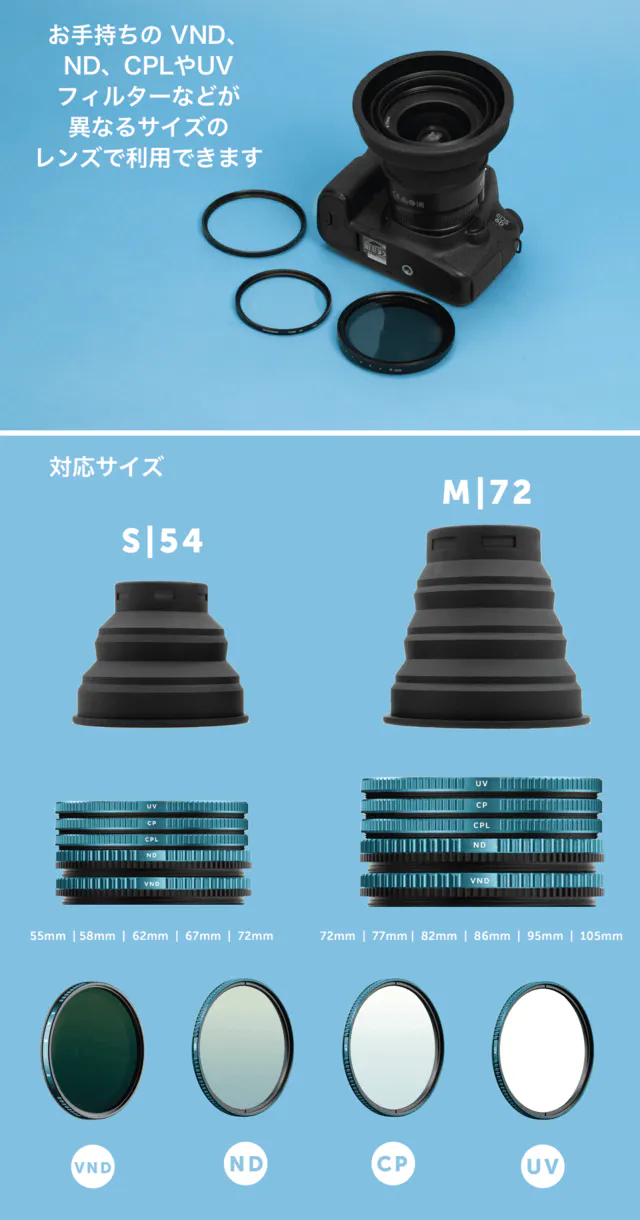 KUVRDのULHは、レンズの口径サイズにあわせて、2種類のサイズを準備しました。