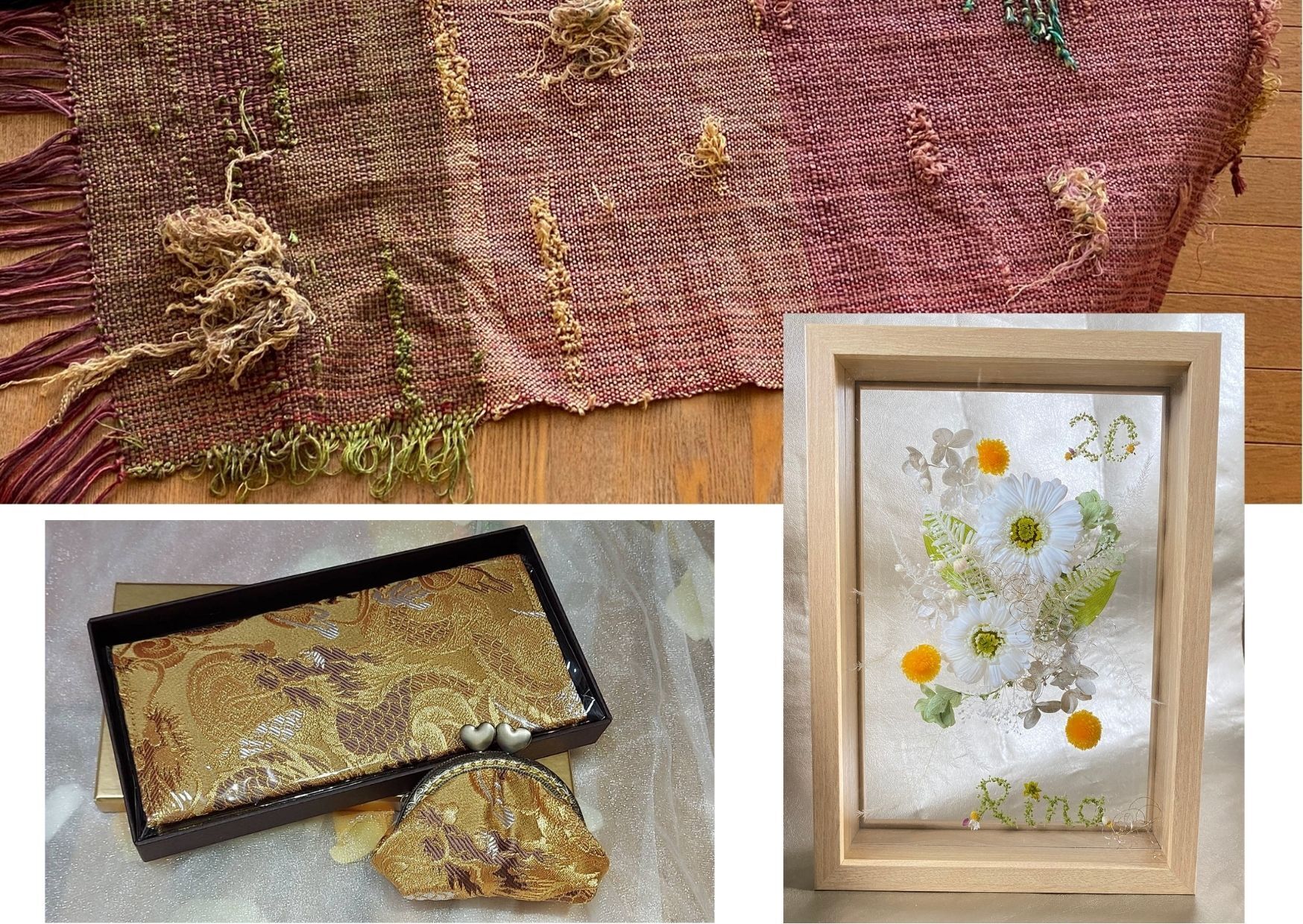 「作りたいものを作って、共感してもらえる。作ってほしい。私も作りたい。教えてほしい、、モノづくりを通じて皆様と積み重ねてきたものが今の私の活動に全てつながっています。」とおっしゃるhiroさんは、さをり織りはもちろん、『PetitPas』という屋号でアロマやフラワーアレンジメント、有名になる前のハーバリウムなどに関わって来られた経歴など、かなり嗅覚の鋭いクリエイターさんです。大東市を中心に講師としてもたくさん活躍の場を持っておられます。