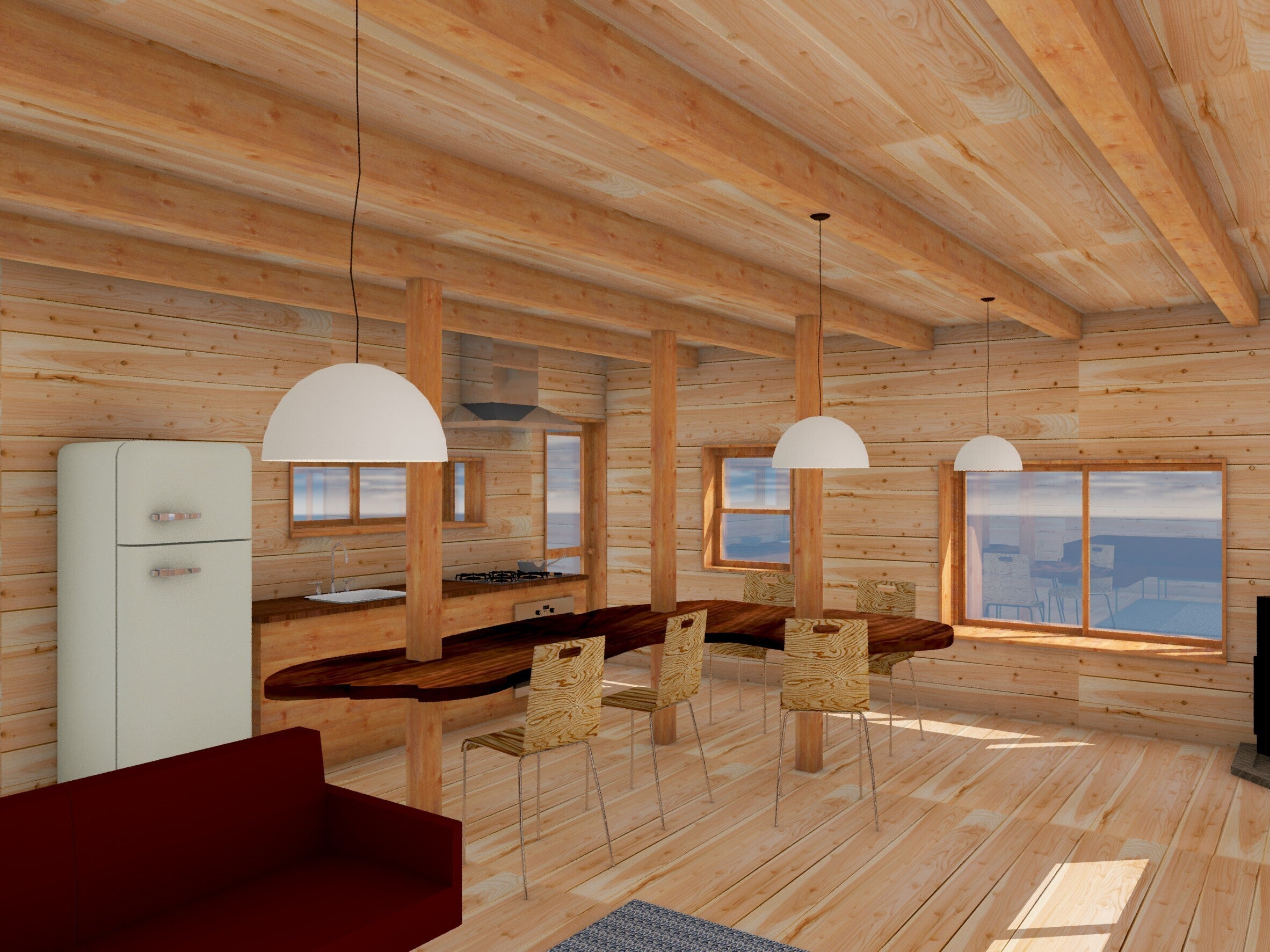 屋内はログハウス風にリノベーションして薪ストーブを設置、上質なリラックスタイムを味わえる空間を目指します。