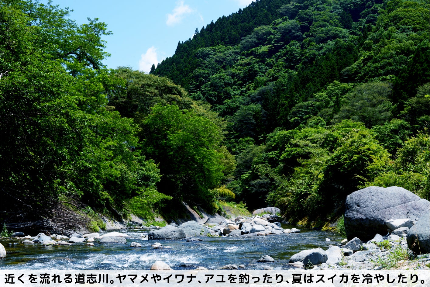 都心から車で90分という、気軽に訪れることができる距離感とはうらはらに、そこには緑鮮やかな山々や澄んだ水の流れなど美しい風景が広がっています。